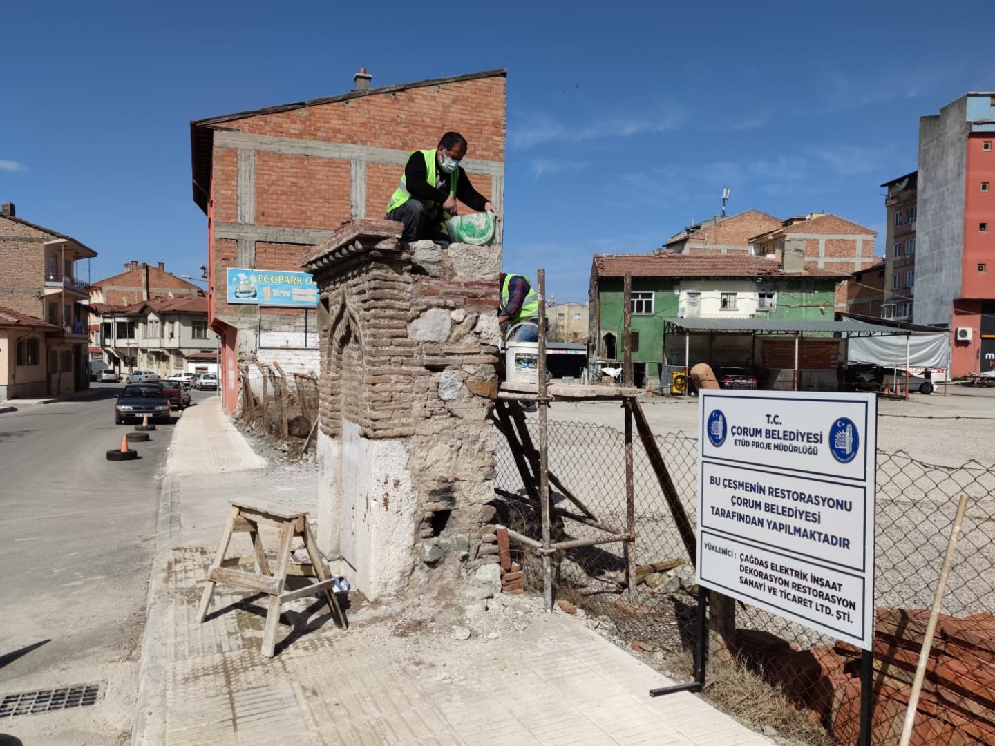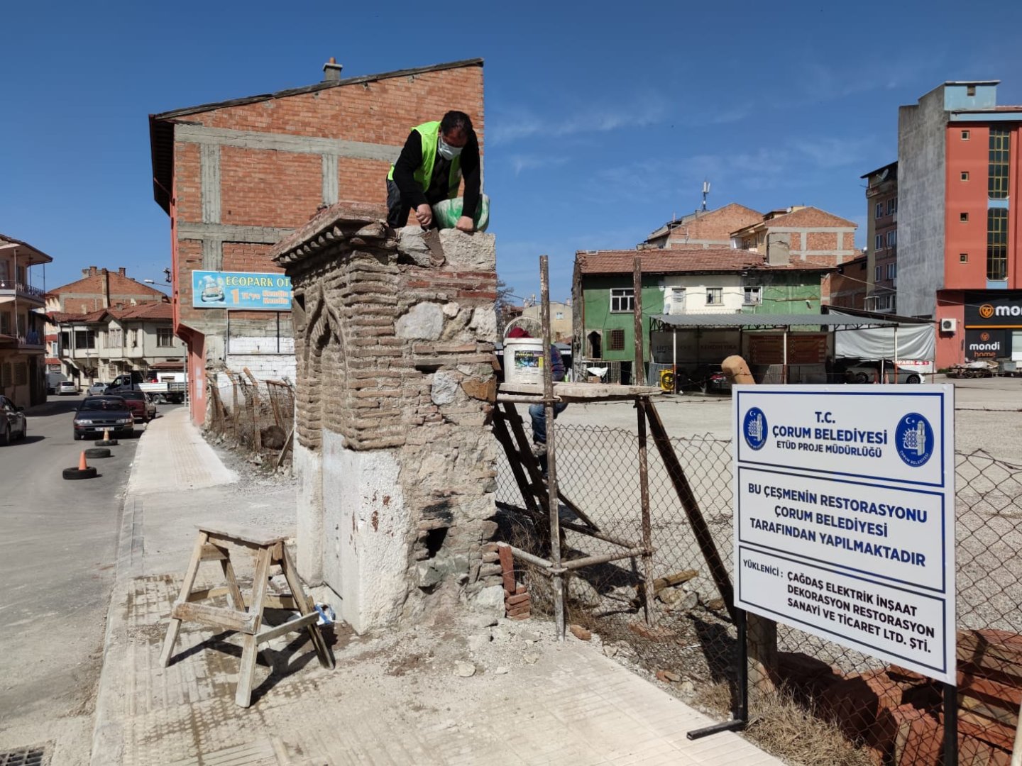Geçtiğimiz ay ihalesi yapılan tarihi çeşmelerin restorasyon çalışmalarına yüklenici firma tarafından başlandı. Çorum’un turizmine katkı sağlayacak projeleri tek tek hayata geçirdiklerini söyleyen Belediye Başkan Yardımcısı İsmail Yağbat, “Kültür Yolu Projesinin önemli ayağından biri olan tarihi sokak çeşmelerinin sularını yeniden akıtmak için çalışmalarımızı başlattık. 7 tarihi çeşmemizin çatı örtülerini yenileyerek, yüzeylerdeki eksikleri aslına uygun olarak tamamlayacağız. Alt kısımlarındaki taş yüzeyleri kumlama yöntemi ile temizleyip üst yüzey kısımları aslına uygun şekilde sıvamasını yapacağız. Tarihi çeşmelerimizden Temmuz ayı içerisinde sular akmaya başlayacak.” dedi.