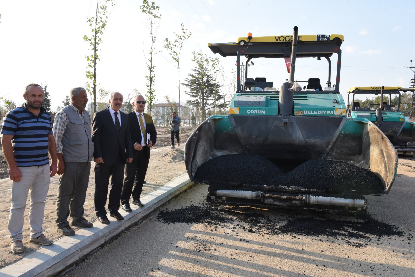 Başkan Gül, “Çorum’un en büyük parkını ve adeta bir yaşam alanı olacak olan Kentparkımızı inşa ediyoruz.Çok az bir süre sonra hizmete açacağız. Çok büyük bir alana inşa ettiğimiz Kentparkımıza, vatandaşlarımızın rahat bir şekilde ulaşım sağlaması da bizim için çok önemli. Bu amaçla hem İnönü Caddesi ve Necmettin Erbakan Caddesini birbirine bağlayan hem de Kentparkı ikiye ayıran ve caddemizde, Tarım Caddesinde asfaltlama çalışması yapıyoruz. Tarım Caddesinde 500 metre uzunluğundaki kısımda asfalt serimi yapıyoruz. Daha önce 8 metre olan Caddemizin genişliğini 20 metreye çıkardık. Yol çalışmamızda,11 bin 200 ton stabilize malzeme serimi yaptık. Yolun daha sağlam ve uzun ömürlü olması için 3 bin 200 ton mekanik serimi gerçekleştirdik. Bu işlemleri bitirdikten hemen sonra da bugün 1600 ton asfalt serimi yapıyoruz. Daha önce yolumuzda ihtiyaç olan kanal, içme suyu ve yağmur suyu hatlarını tamamlamıştık. Bugün yaptığımız asfalt serimiyle birlikte Tarım Caddemizin 500 metrelik kısmını da tamamlamış olacağız. Hem Kentparkımızın girişi olan hem de İnönü ve Necmettin Erbakan Caddemizi birbirine bağlayan kısımda çalışmamızı bitirmiş oluyoruz. İlerleyen süreçte buradaki sanayi dükkânları taşınacak. Bu bölge konut ve ticaret alanı olacak. Konut ve ticaret alanlarına ulaşımın daha rahat yapılabilmesi için bu çalışmayı yapıyoruz” dedi.