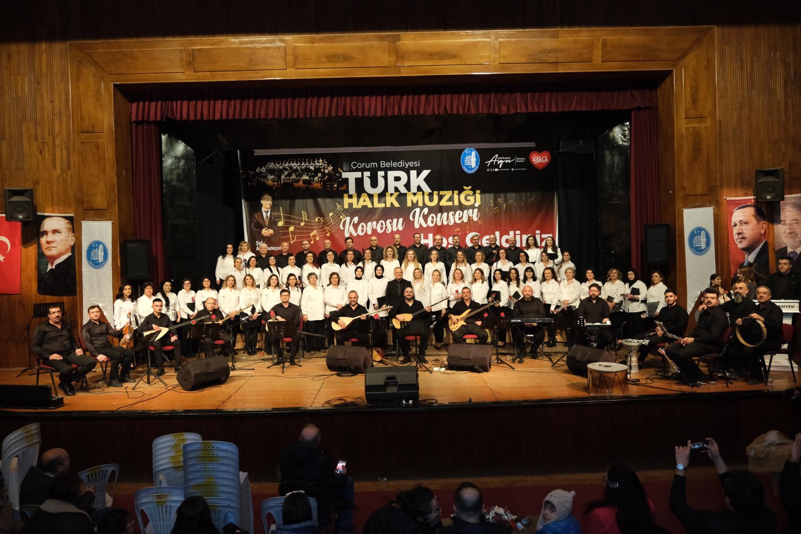 Çorum Belediyesi’nin kültür-sanat etkinlikleri kapsamında düzenlediği Türk Halk Müziği konserine ilgi yoğun oldu. Şef Arif Sadeçolak yönetiminde Devlet Tiyatro Salonu’nda sahne alan Türk Halk Müziği korosu, izleyenlere türkü tadında bir gece yaşattı. Belediye Başkanı Dr. Halil İbrahim Aşgın’ın yanı sıra İl Jandarma Komutanı Naim Çetinkaya’nın da izlediği konserde birbirinden güzel türkülere izleyenlerde eşlik etti.