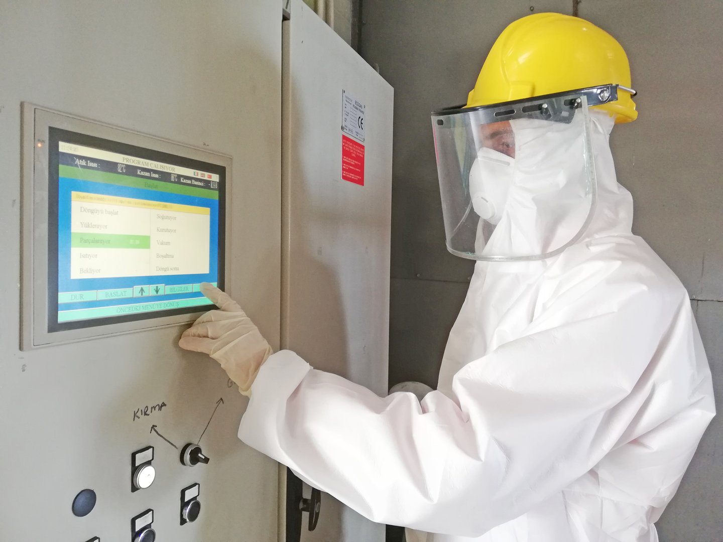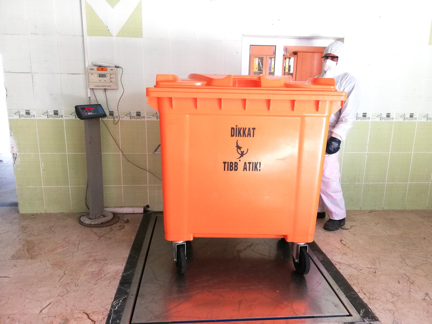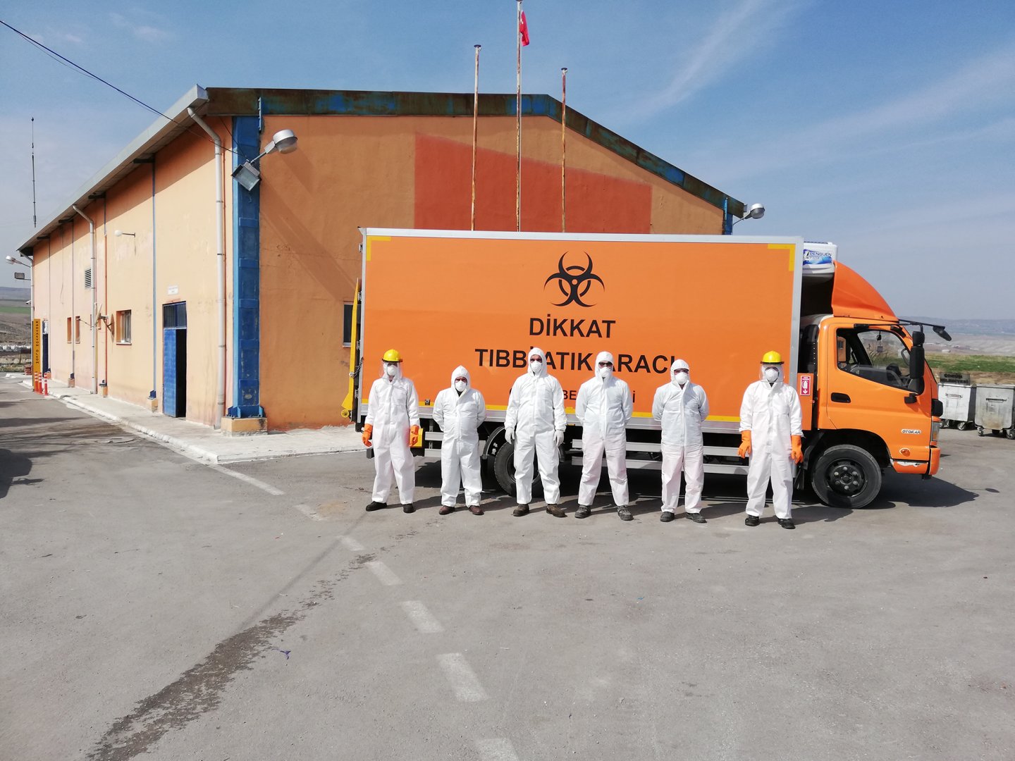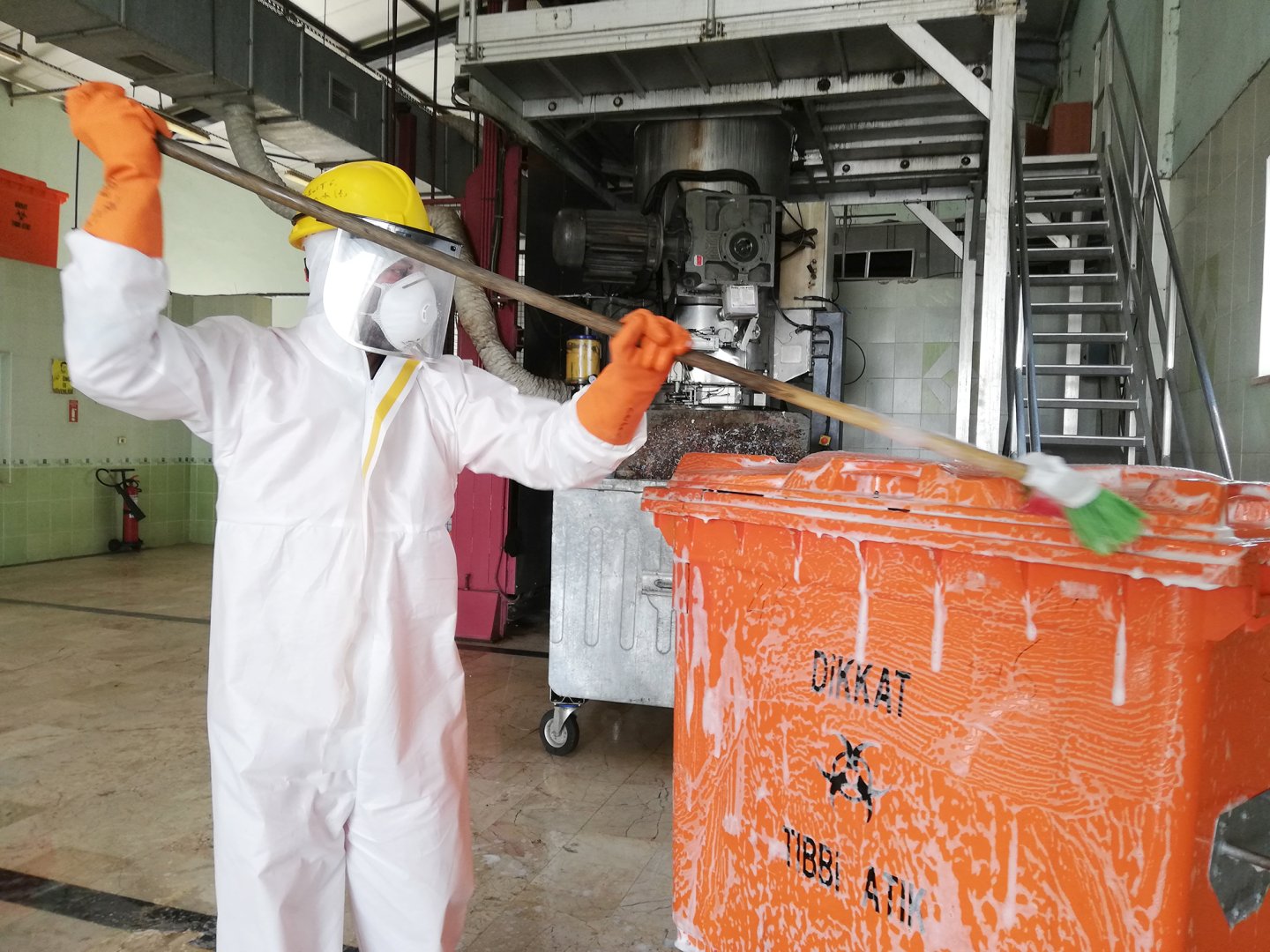 206 sağlık kurum ve kuruluşundan aldıkları tabi atıkların tam donanımla personel soğutuculu lisanslı tıbbi atık araçlarıyla toplandığını ifade eden Başkan Aşgın, “Katı Atık Bertaraf Tesisi’nin içerisinde bulunan Tıbbi Atık Sterilizasyon Tesisi’nde yüksek sıcaklık ve basınç altında parçalanarak sterilize edilen ve evsel atık niteliği kazanan atıklar daha sonra düzenli depolama sahasında çevreye ve insan sağlığına zarar vermeden bertaraf ediliyor. Tıbbi atıkların toplanması, taşınması ve bertaraf edilmesi sürecinde de önlemlerimizi en üst seviyeye çıkardık. Tıbbi atıkların bertarafı esnasında çalışan personelimizin enfeksiyon kapmaması için de gerekli iş sağlığı ve güvenliği kurallarını titizlikle uyguluyoruz. Bu doğrultuda taşıma ve bertaraf esnasında çalışan personelimiz eldiven, siperlik yüz koruyucu ekipman, tek kullanımlık tulum elbise gibi kişisel koruyucu donanımlarını aksatmadan kullanıyor. Günlük olarak iş elbiselerini yenileri ile değiştiriyorlar. Tıbbi atık naklinden sonra atık taşıma aracı ve tıbbi atıkların taşındığı konteynırlar dezenfektan ile temizlenip yıkama ünitesinde temizleniyor. Ayrıca Tıbbi Atık Sterilizasyon Tesisi’nin bütün çalışma alanları her gün yıkanıp ve dezenfekte ediliyor.” dedi.