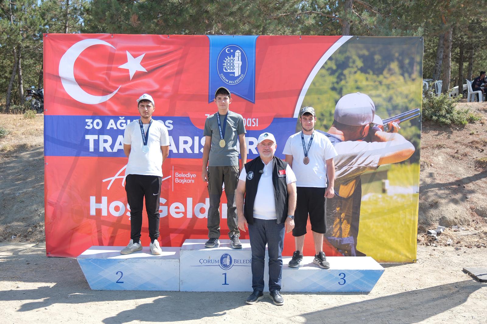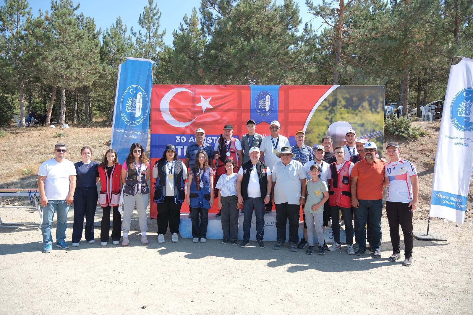 Çorum Belediyesi tarafından düzenlenen 30 Ağustos Zafer Kupası Trap Atışlarında 8 ilden 115 sporcu mücadele etti. 5 kategoride düzenlenen yarışları Belediye Başkanı Dr. Halil İbrahim Aşgın, Belediye Başkan Yardımcısı İsmail Yağbat ve sporcuların yakınları da izledi. Sabah saatlerinde başlayan yarışların ardından dereceye giren sporculara madalya ve ödülleri verildi. 13 sporcunun mücadele ettiği Gençler Kategorisinde Çorum’dan Yusuf Yağız Bayram birinci, Samsun’dan Emirhan Aktaş ikinci, Çorum’dan İbrahim Eker ise üçüncü oldu. 10 sporcunun mücadele ettiği Veteranlar Kategorisinde ise Çorum’dan Cemil Ahıska birinci, Sakarya’dan Osman Türkmen ikinci, Amasya’dan Yaşar Çavuş ise üçüncü olmayı başardı. 8 sporcunun katılım sağladığı Kadınlar Kategorisinde ise Çankırı’dan yarışmalara katılan Sudenaz Teke birinci, Çorum’dan Buket Sin ikinci, yine Çorum’dan Ceren Özkaya üçüncü oldu. 44 sporcu ile en çok katılımın sağlandığı Avcılar Kategorisi’nde ise Çorum rüzgarı esti. Çorum’dan Caner Kalabalık birinci olurken, yine Çorum’dan yarışlara katılan Süleyman Topkara ikinci, Arif Hız ise üçüncü oldu. Avcılar Kategorisinde 6 sıra Çorumlu sporcuların oldu. 40 Sporcunun katılım sağladığı Profesyonel Kategorisinde ise Çorum’dan Süleyman Çalışkan birinciliği elde ederken, Sakarya’dan katılan Ahmet Deli ikinci, Mehmet Caymaz ise üçüncü oldu.