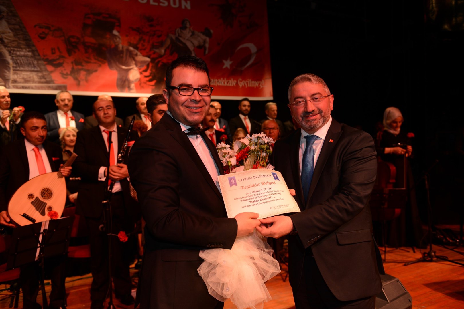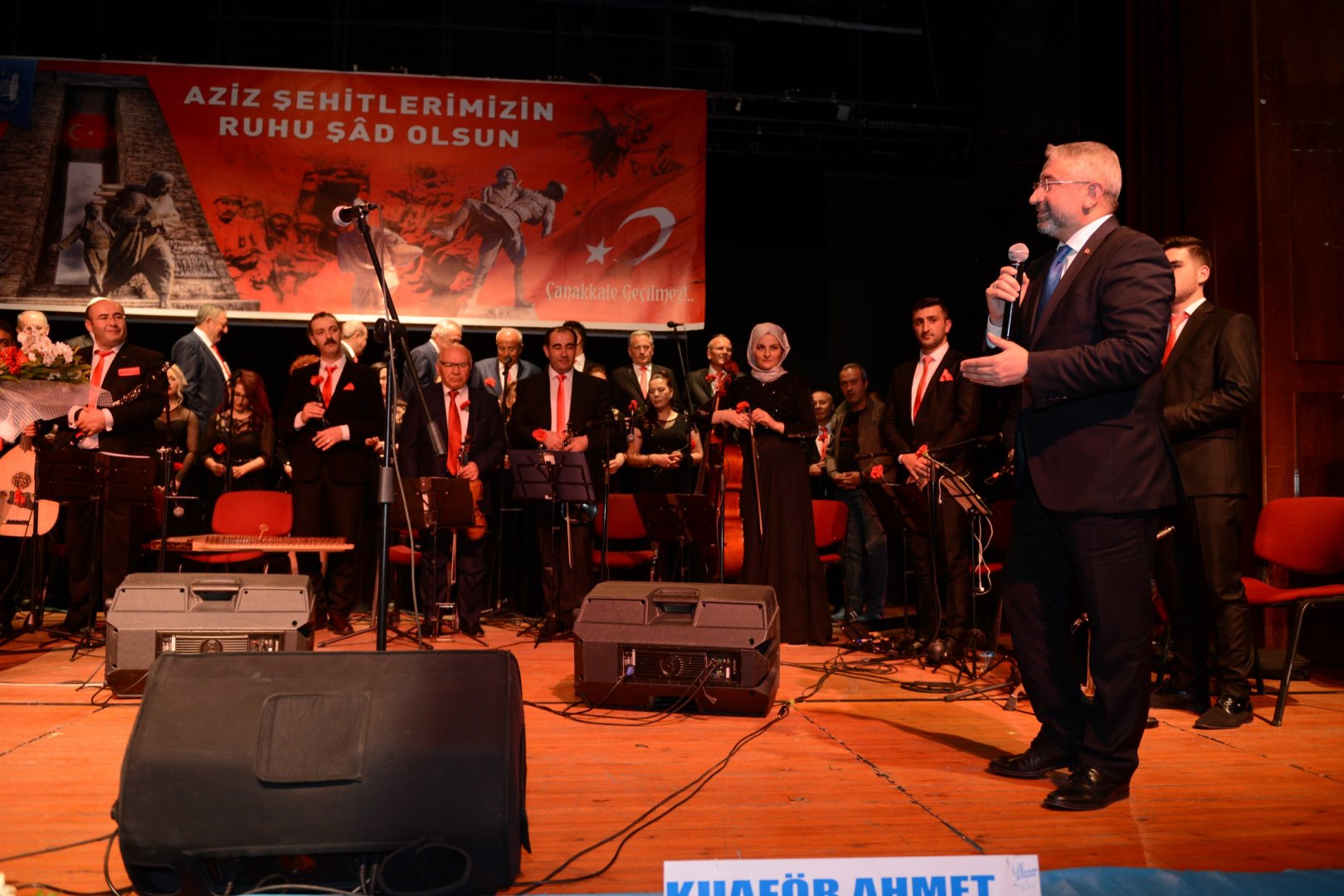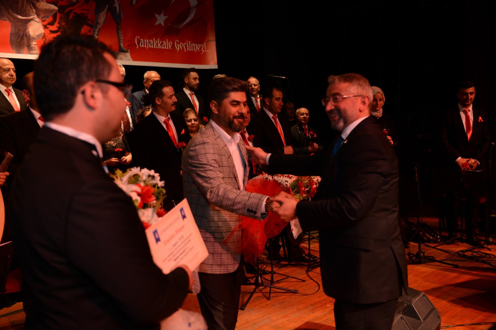 Türk Sanat Müziği Korosu üyeleri kahraman aziz şehitlerimizi de unutmayarak şehitler için özel bir bölüm hazırladı. Ülkemizi ve şehrimizi girdiği ses yarışmalarında temsil eden Ulu Camii Müezzin Kayyumu Hasan Çakmak Milli Şairimiz Mehmet Akif Ersoy’un yazdığı Çanakkale Şehitlerine şiirini kaside olarak seslendirerek dinleyicileri hem duygulandırdı hem de gururlandırdı.