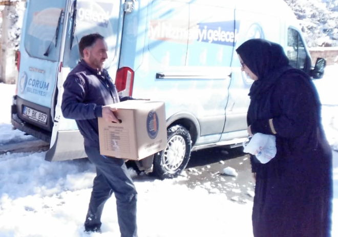Çorum’da bulunan mültecilerin her zaman yanlarında olduklarını ifade eden Belediye Başkanı Zeki Gül, “Gönül belediyeciliği yapmaya, insan ve toplum merkezli hizmetlerimize devam ediyoruz. Şehrimizde bulunan mülteci kardeşlerimizin ihtiyaçlarını karşılamak için ilgili kurumlarımızla koordineli olarak çalışıyor, imkânlarımızı seferber ediyoruz. Mültecilerimize Ensar olmak için şehrimizde bulunup bize müracaat eden 1764 mülteci aileye düzenli olarak gıda paketi yardımında bulunuyoruz. Ailelerimizin ihtiyaçlarına göre battaniye, yatak, soba, set üstü ocak, kanepe, ranza, banyo kazanı, kıyafet, bez, süt temel ihtiyaçları sağlıyoruz. Mülteci kardeşlerimizin zor günlerinde yanlarında olmaya gayret ediyoruz” diye konuştu.