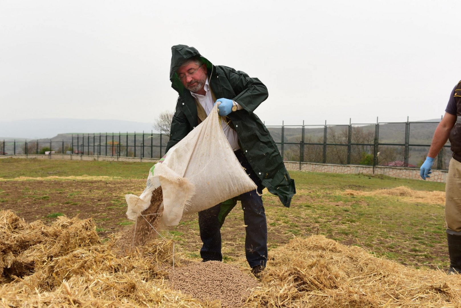 Sıklık Tabiat Parkında 50 dönümlük alanda bulunan yabani hayvanların bakımlarını ve yemleme çalışmalarını yerinde inceleyen Belediye Başkanımız Dr. Halil İbrahim Aşgın, Sıklık Tabiat Parkını Çorum halkı için hayatın normale döneceği günlere hazırladıklarını söyledi. Karaca, geyik, yabani keçi ve yaban koyunlarının da içinde olduğu nesli tükenme tehlikesinde olan yabani hayvanları bizzat kendisi yemleyen Başkan Aşgın, “Buradaki hayvanlarımızın beslenme ve bakımlarını yaz kış demeden aksatmadan yapıyoruz. Sadece buradaki hayvanlar değil; hep birlikte aynı şehri paylaştığımız tüm sokak hayvanlarımızı da her gün beslenme ve sağlık konularında yalnız bırakmıyoruz. Özellikle Veteriner İşleri Müdürlüğümüz ve hayvan haklarıyla ilgili bazı sivil toplum örgütlerimizle beraber yaptığımız organizasyonlarla sokak hayvanlarımızı yemliyor, onların aşı ve bakımlarını yapıyoruz. Aynı gök kubbenin altında yaşıyoruz ve tüm sokak ve yaban hayvanları da bize emanet.” dedi.
