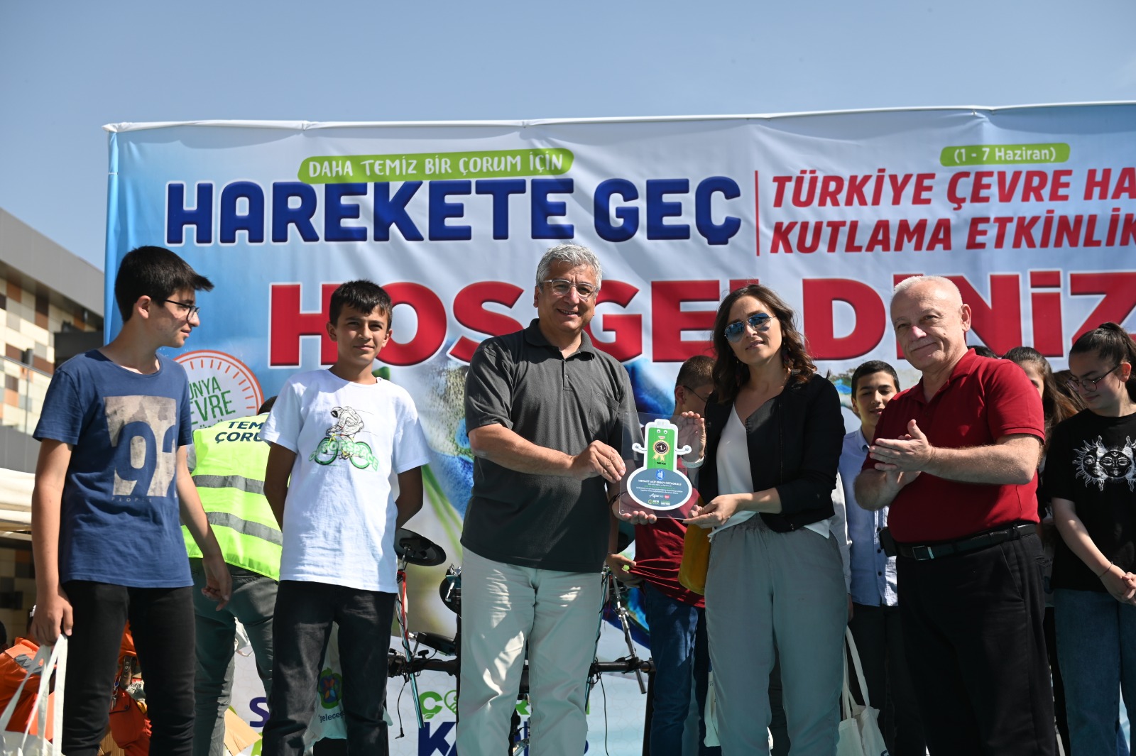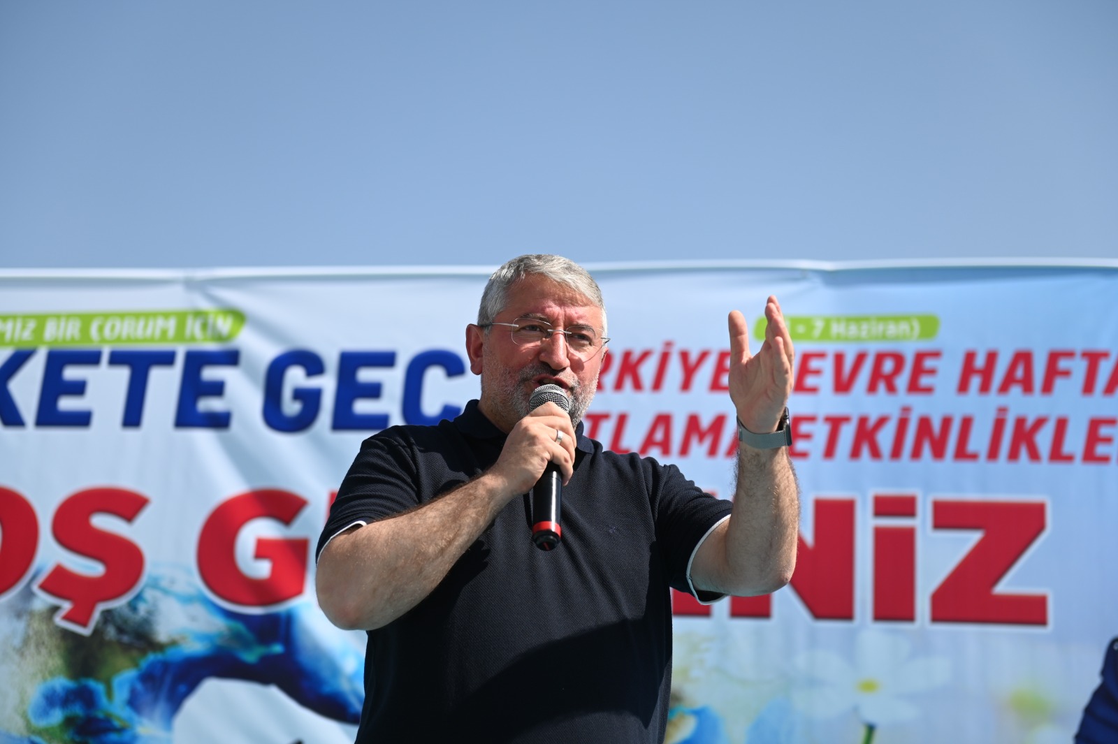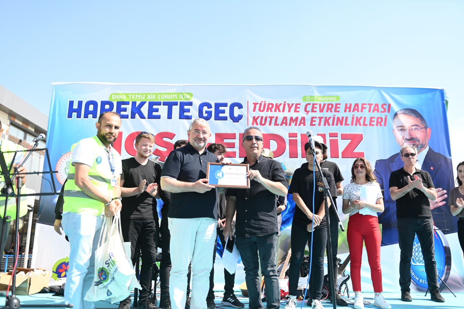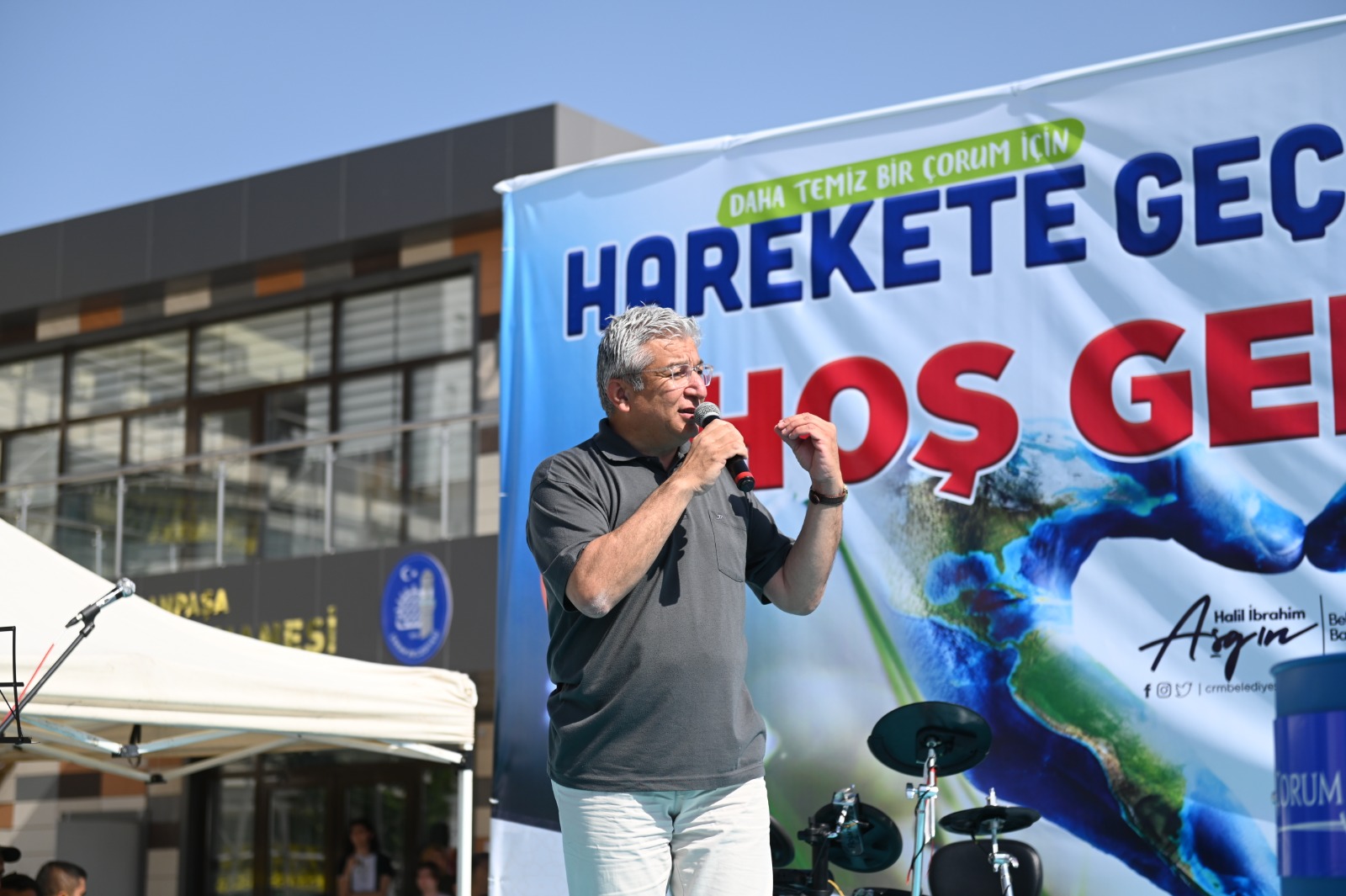 Belediye Başkanımız Dr. Halil İbrahim Aşgın etkinlikte yaptığı konuşmada çevrenin, sağlık, vatan, bayrak gibi önemli ve kıymetli olduğunu ifade ederek, “Ülkemizin 2023, 2053 hedefleri var. Bu hedefler içerisinde çevre de var. Bizde Çorum Belediyesi olarak, okul okul gezip çocuklarımızın çevre duyarlılığını artırmaya çalışıyoruz. Tertemiz bir Çorum olsun diye büyük bir aşkla çalışıyoruz. Ulusal, Uluslararası nereye gittiysek Çorumluyuz deyince Çorum’un temizliğini söylüyorlar. Hakikaten Türkiye’nin en temiz şehri. Bu duyguyu bize yaşatan personelimize de teşekkür ediyorum. Çevre çalışmaları noktasında Çorum Belediyesi olarak atıkların toplanmasından, birinci sınıf atık getirme merkezinden yıkıntı atıklarını toplama merkezine kadar, toplam yenilenebilir enerji anlamında 8 bin hanenin elektrik ihtiyacını yenilenebilir enerji kaynaklarından, çevreci enerji kaynaklarından, çöpten sağlayan bir belediye olarak, rüzgârı elektrikte kullanan bir belediye olarak çevreci belediye anlamında Türkiye’ye örnek birçok çalışma yapıyoruz” dedi.