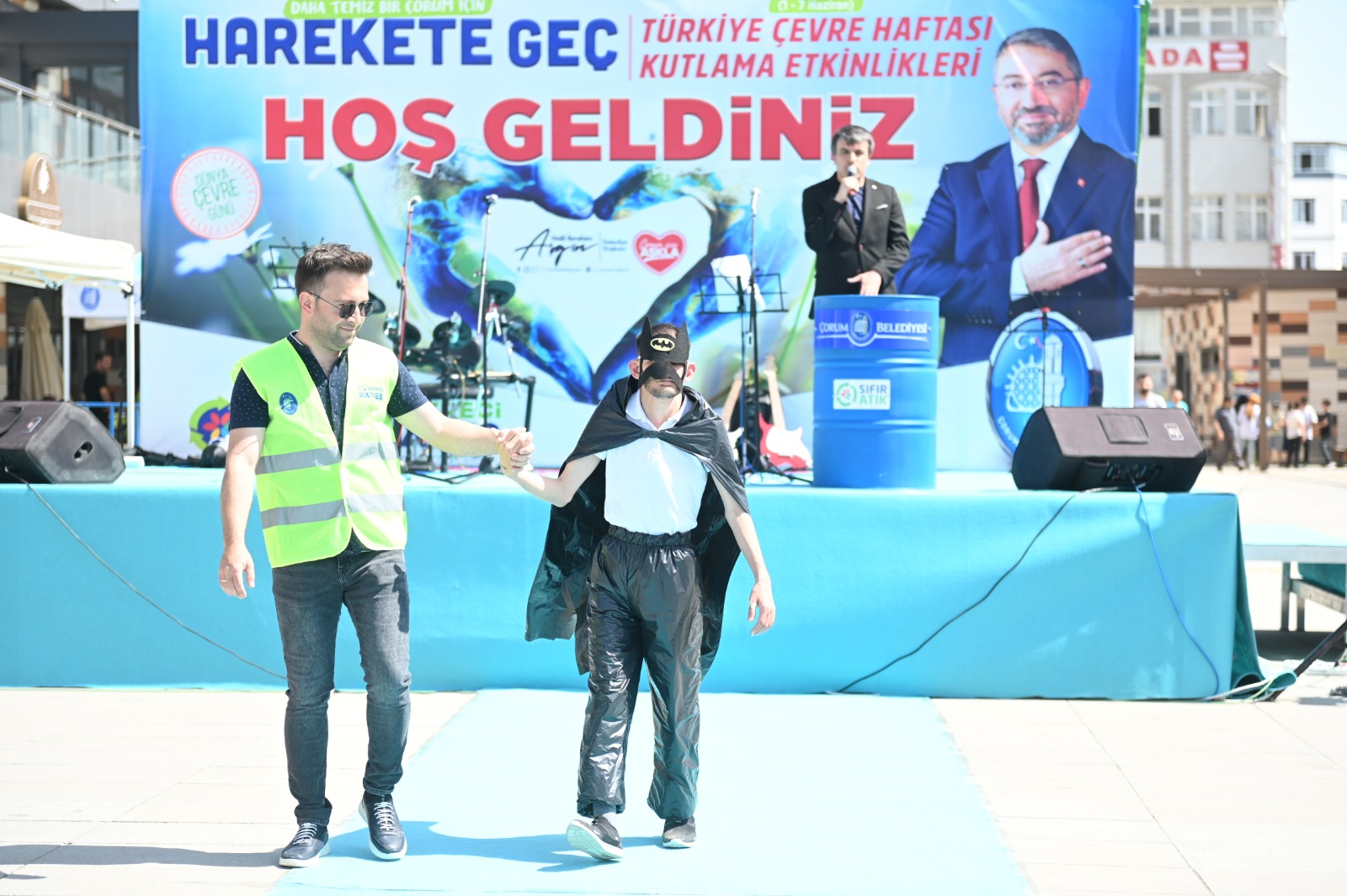 Belediye Başkanımız Dr. Halil İbrahim Aşgın etkinlikte yaptığı konuşmada çevrenin, sağlık, vatan, bayrak gibi önemli ve kıymetli olduğunu ifade ederek, “Ülkemizin 2023, 2053 hedefleri var. Bu hedefler içerisinde çevre de var. Bizde Çorum Belediyesi olarak, okul okul gezip çocuklarımızın çevre duyarlılığını artırmaya çalışıyoruz. Tertemiz bir Çorum olsun diye büyük bir aşkla çalışıyoruz. Ulusal, Uluslararası nereye gittiysek Çorumluyuz deyince Çorum’un temizliğini söylüyorlar. Hakikaten Türkiye’nin en temiz şehri. Bu duyguyu bize yaşatan personelimize de teşekkür ediyorum. Çevre çalışmaları noktasında Çorum Belediyesi olarak atıkların toplanmasından, birinci sınıf atık getirme merkezinden yıkıntı atıklarını toplama merkezine kadar, toplam yenilenebilir enerji anlamında 8 bin hanenin elektrik ihtiyacını yenilenebilir enerji kaynaklarından, çevreci enerji kaynaklarından, çöpten sağlayan bir belediye olarak, rüzgârı elektrikte kullanan bir belediye olarak çevreci belediye anlamında Türkiye’ye örnek birçok çalışma yapıyoruz” dedi.