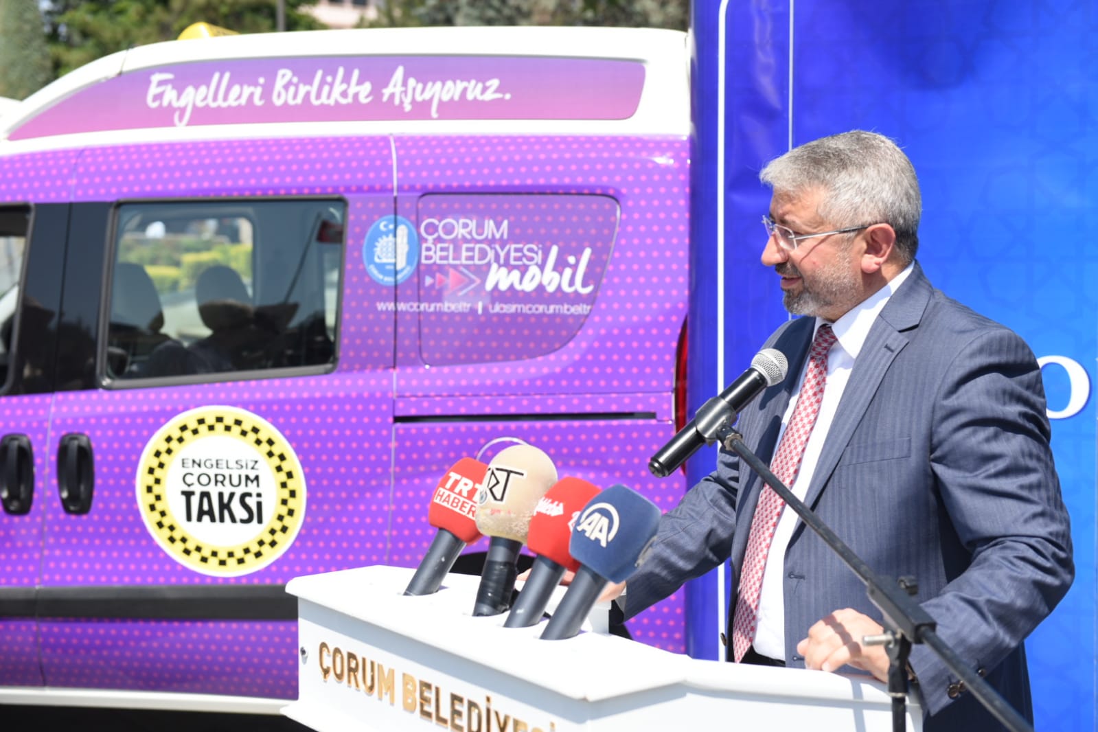 Mor taksi ile ilgili adayken talepler geldiğini ve hemen çalışmalar yaptıklarını ifade eden Başkan Aşgın, “Bu konuda destek veren AK Parti, CHP ve MHP meclis grubumuza da teşekkür ediyorum. Biz Türkiye’nin ilk engelsiz mor taksi hizmet yönetmeliğini hazırlayan il olma şerefine nail olduk. Bu uygulamayı Türkiye içerisinde bir yönetmeliğe tabi olarak ilk Çorum Belediyesi yaptı” dedi.