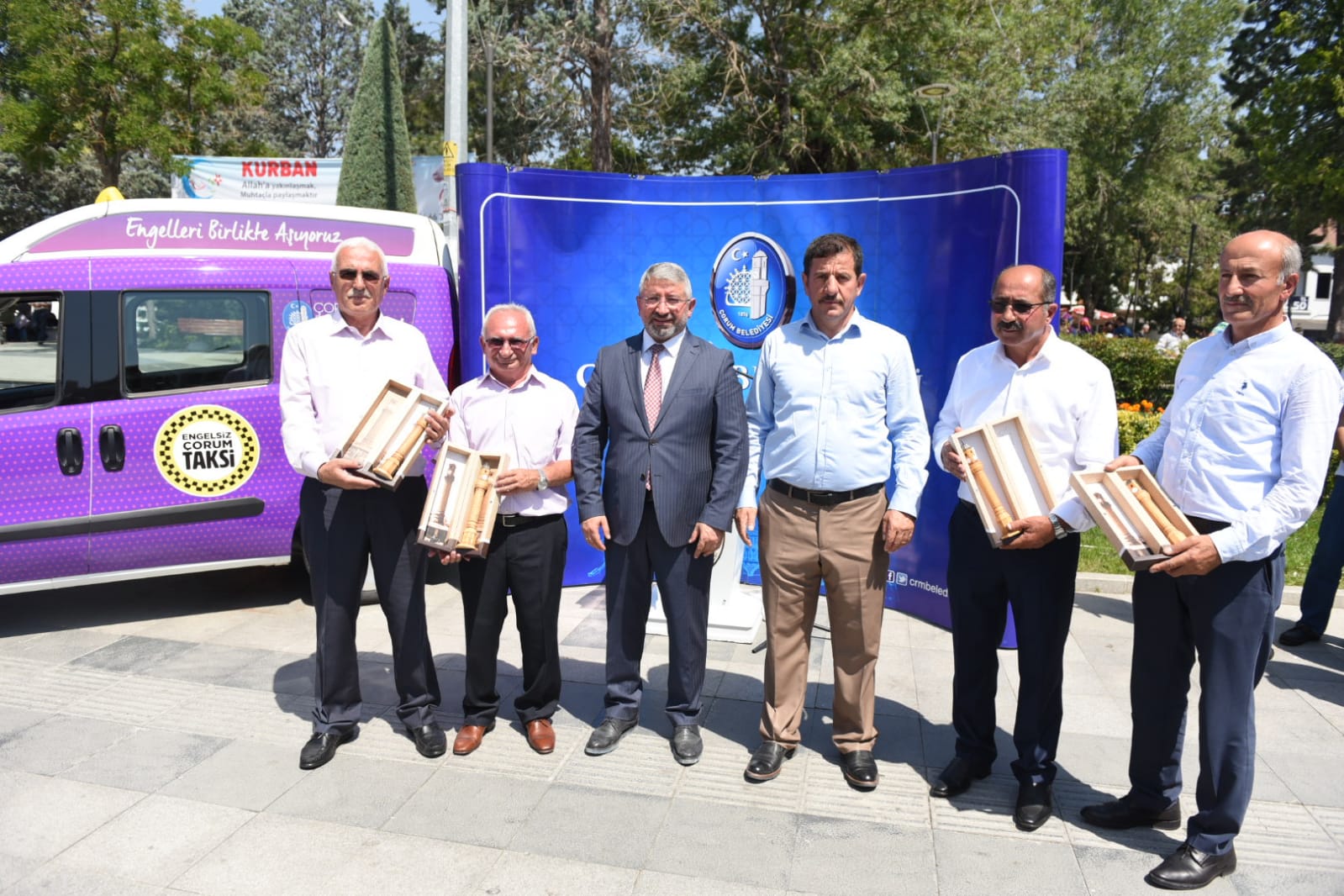 Çorum Taksiciler, Minibüsçüler ve Servisçiler Esnaf Odası Başkanı Mehmet Gayretli de herkesin bir engelli adayı olduğunu ifade ederek, projede emeği geçen başta Belediye Başkanı Dr.Halil İbrahim Aşgın olmak üzere herkese teşekkür etti. Aşgın, mor taksi uygulamasına katılan taksicilere günün anısına Saat Kulesi maketi hediye etti. Konuşmaların ardından törene katılan engelli bireyler mor taksilere binerek şehir turu attı.