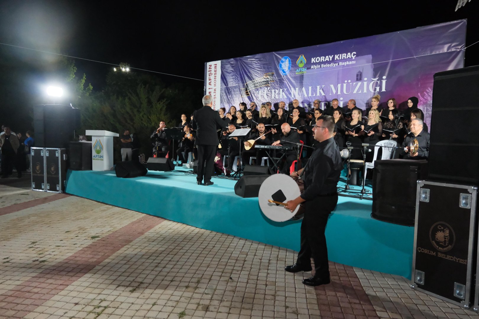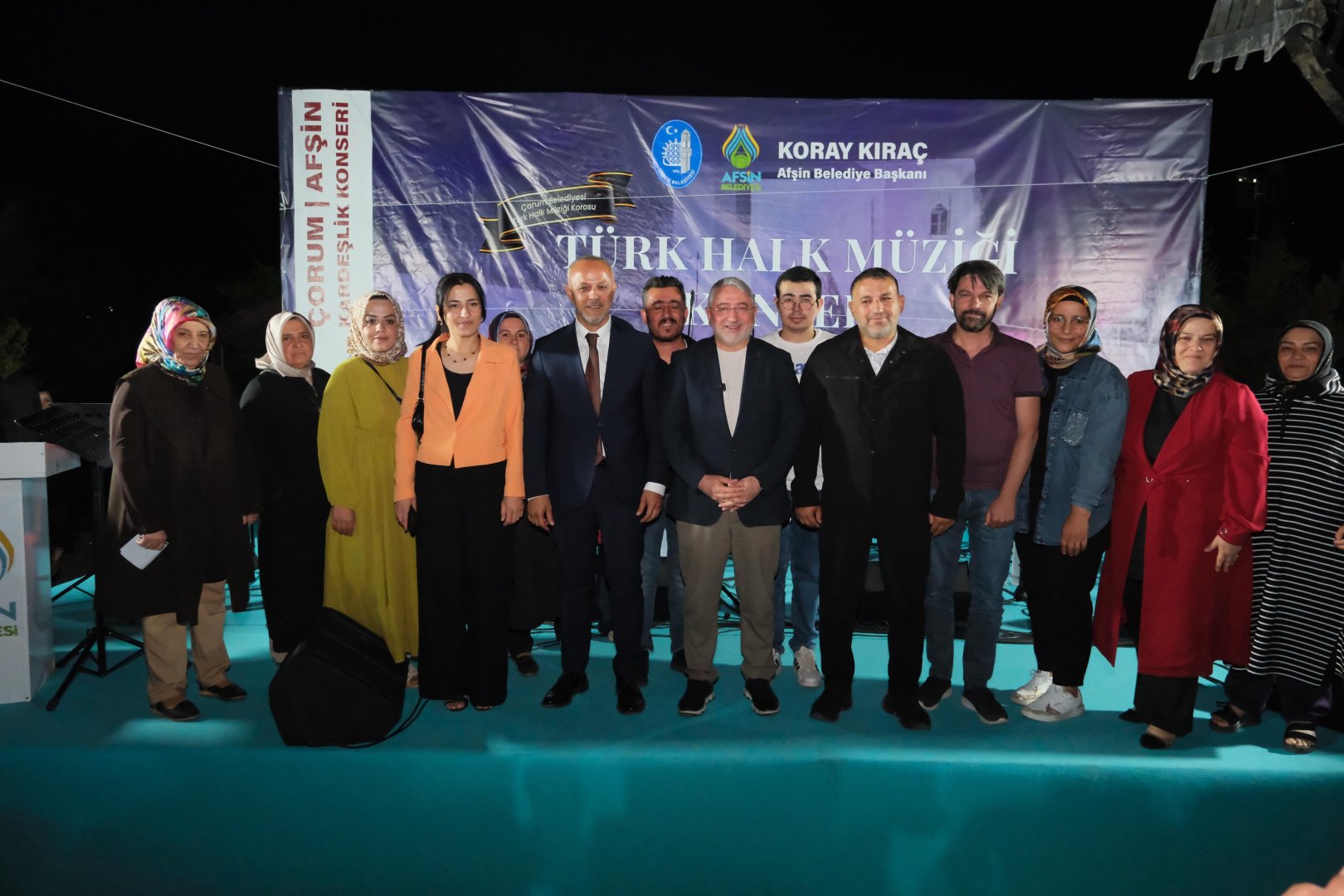 Çorum Belediyesi, kardeş şehir Afşin Belediyesi ile birlikte konser düzenledi. “Afşin-Çorum Kardeşlik Konseri” kapsamında Çorum Belediyesi Türk Halk Müziği Korosu, Afşin’de sahne aldı. Afşin Rabia Parkı’nda düzenlenen konsere Afşinlilerin ilgisi yoğun oldu.