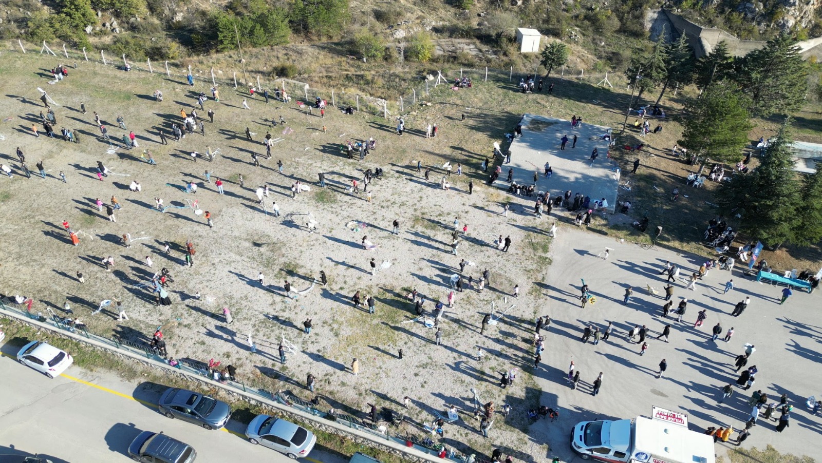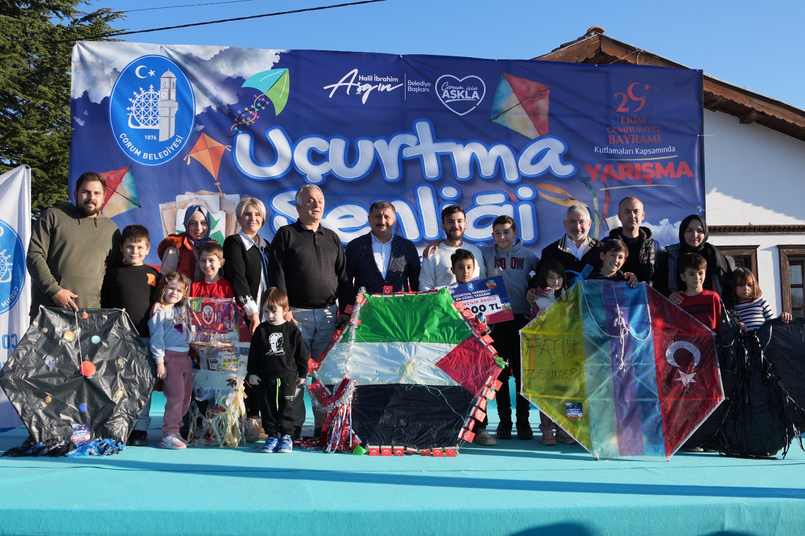 Çorum Belediyesi tarafından 29 Ekim Cumhuriyet Bayramı kutlamaları kapsamında Uçurtma Şenliği düzenlenirken atık malzemelerle yapılan uçurtmalarda yarışmada dereceye girebilmek için yarıştı.