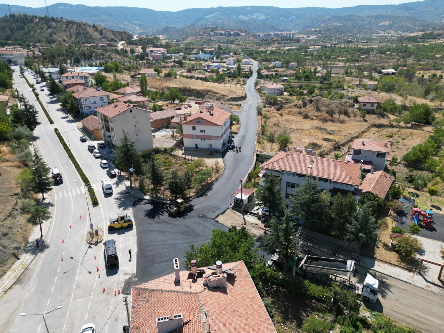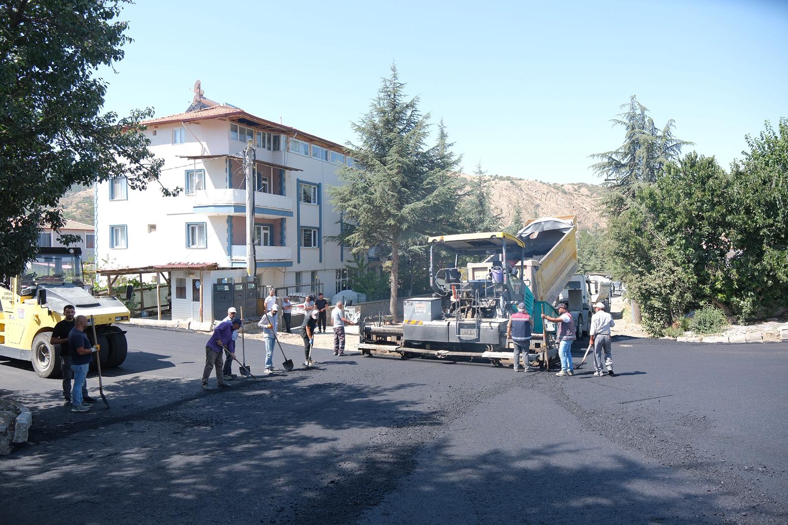 Çorum merkezde asfalt çalışmalarını sürdüren Çorum Belediyesi ilçelere de destek vermeye devam ediyor.