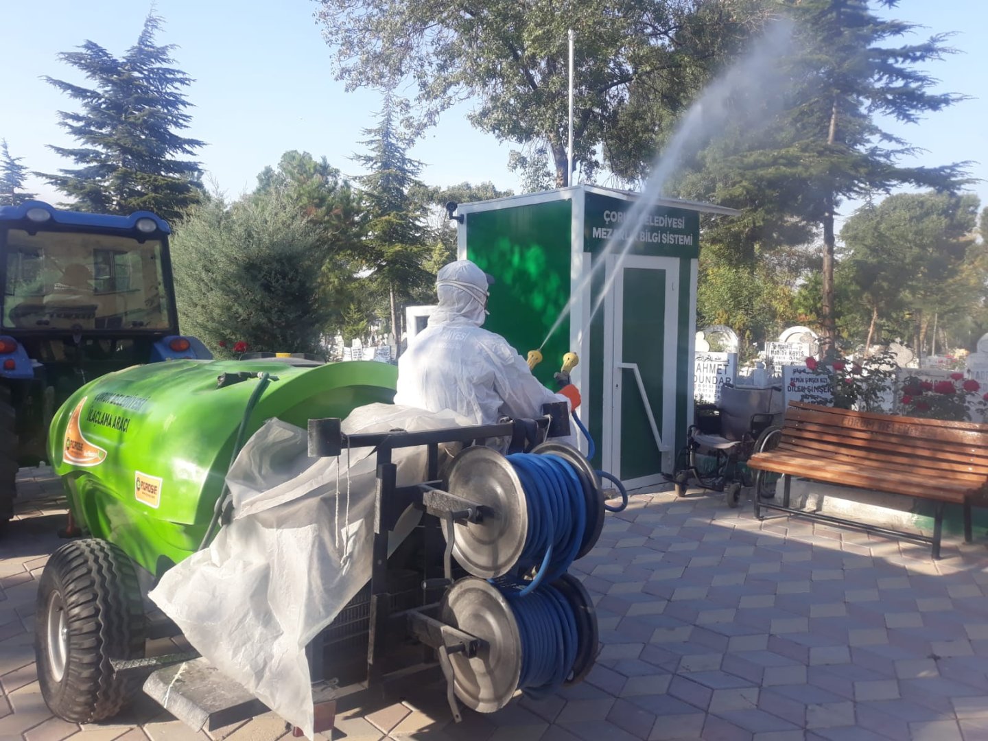 Belediye ekiplerinin şehrin dört bir tarafında çalışmaları aralıksız sürdürdüğünü dile getiren Belediye Başkanımız Dr. Halil İbrahim Aşgın Ulu Mezarlıkta kabir temizliği, ilaçlama, ağaç budama, temizlik işlerini gerçekleştiriyoruz. Çorum Belediyesi olarak tüm hizmetlerimizde olduğu gibi mezarlık hizmetlerinde de duyarlılık gösteriyoruz. Yaşama gözlerini yummuş vatandaşlarımızın ebedi istirahatgahları olan mezarlıklarda düzenli ve sürekli çalışmalar yapıyoruz. Ulu Mezarlık başta olmak üzere diğer mezarlıklarımızda da kapsamlı temizlik ve bakım hizmeti gerçekleştiriyoruz. Ulu Mezarlığımızda kabir temizliği, ilaçlama, ağaç budama, mezar yeri temini, yolların temizlik işlerini gerçekleştirdik. Çiftlik ve Hıdırlık mezarlıklarımızda da aynı çalışmaları gerçekleştireceğiz” dedi.