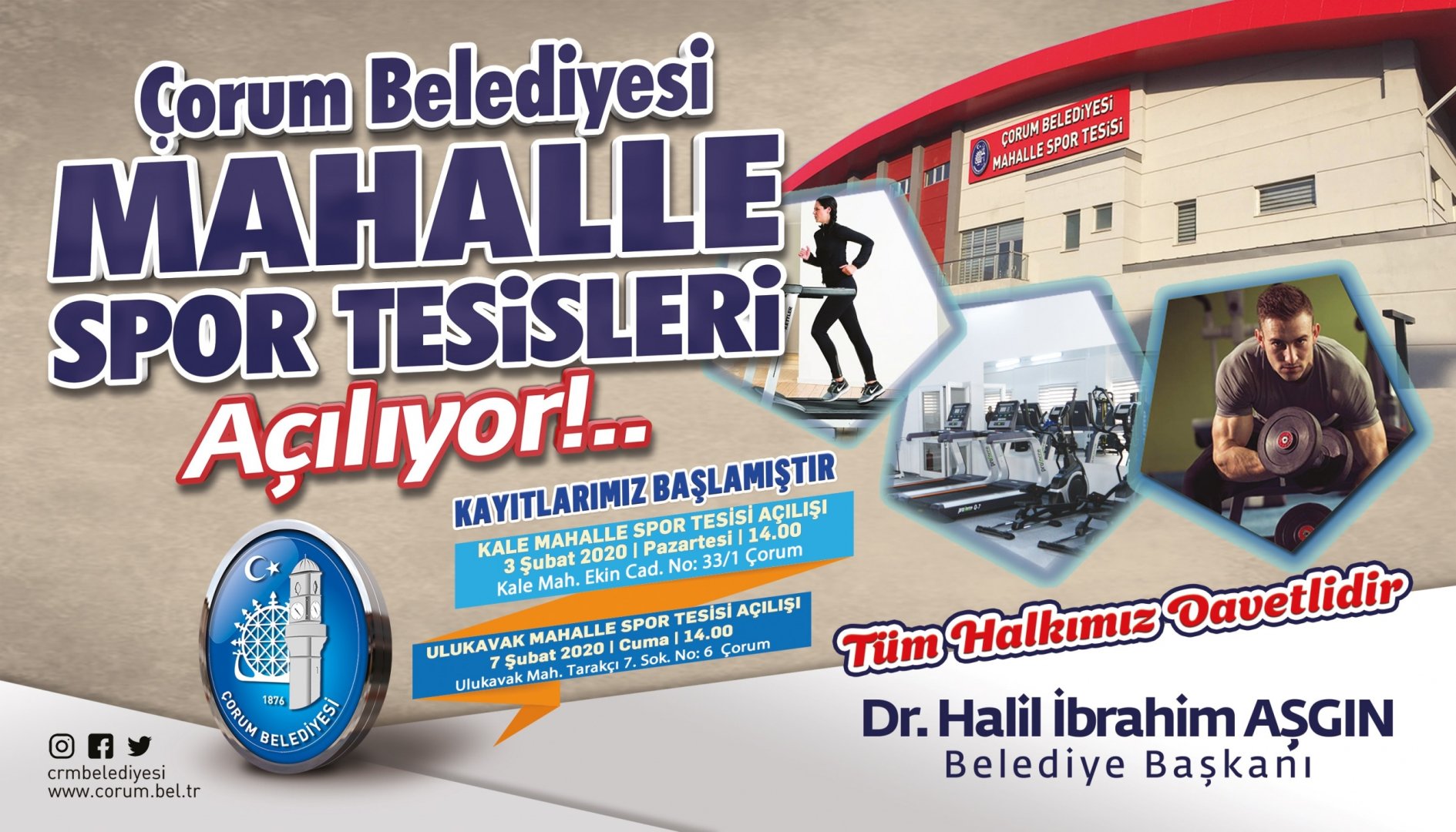 Mahalle spor salonlarında ve semt parklarında herkesin spor yapabileceği alanlar oluşturarak sporu sağlıklı yaşamın bir parçası haline getirmeyi hedeflediklerini belirten Belediye Başkanımız Dr. Halil İbrahim Aşgın, tüm alanlarda olduğu gibi spor alanında da önemli çalışmalar yaptıklarını belirtti. Kale ve Ulukavak Mahallelerinde yapımını tamamladıkları spor tesislerinin Çorum halkının hizmetinde olduğunun altını çizen Başkan Aşgın, ” Spor tesislerimizin tamamı tüm Çorum halkının hizmetindedir.  Her yaştan hemşehrimiz buralara gelip sporlarını yapabilirler. 7’den 70’e herkes en az bir spor dalı ile ilgilenmeli. Bunun için şehrin muhtelif yerlerinde yürüyüş yolları yapıyoruz, bisiklet yolları yapıyoruz, mahalle spor salonları ve tesisleri yapıyoruz. Sağlıklı bir yaşamın sporsuz olmayacağını biliyoruz. Hemşehrilerimize bol sporlu ve sağlıklı günler diliyorum” dedi.