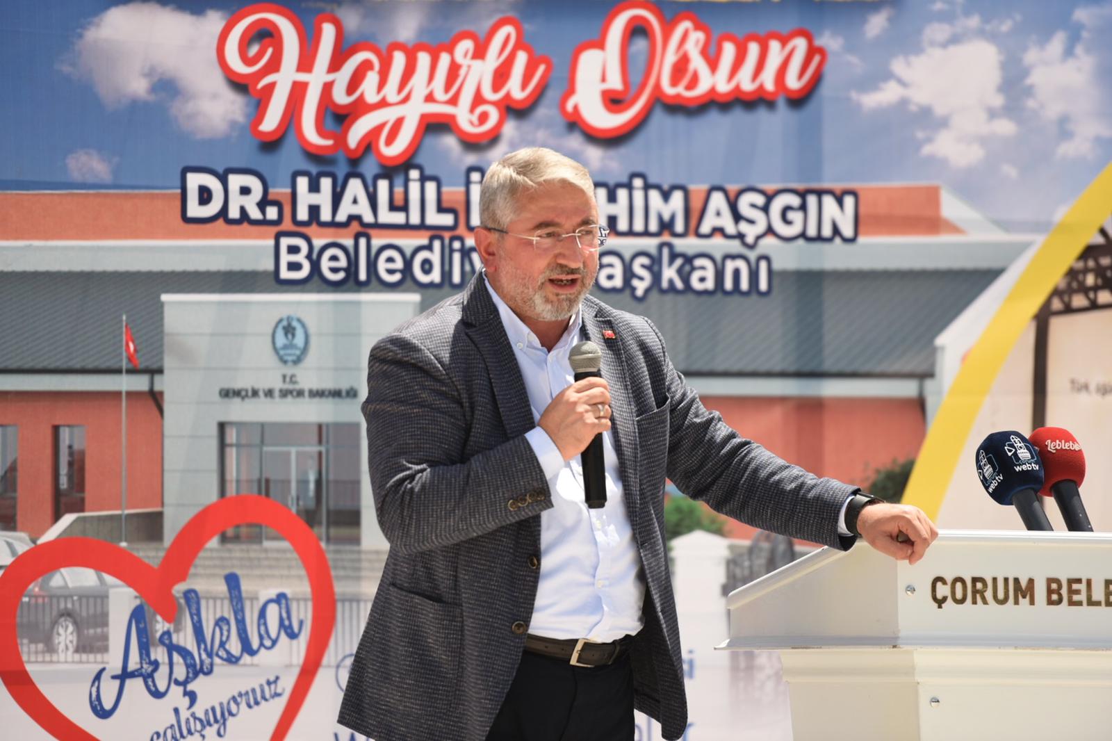 Şehir genelinde hizmete açtıkları spor kompleksleri ile sporu Çorum’da herkesin ulaşabileceği bir konuma getirdiklerini ifade eden Belediye Başkanımız Dr. Halil İbrahim Aşgın da, “Rabbimize hamdolsun her gün bir temel atma töreni, bir açılış töreni gerçekleştiriyoruz. Başımızda Recep Tayyip Erdoğan gibi bir liderle durmadan, heyecanla, aşkla, muhabbetle koşmaya devam ediyoruz” dedi.