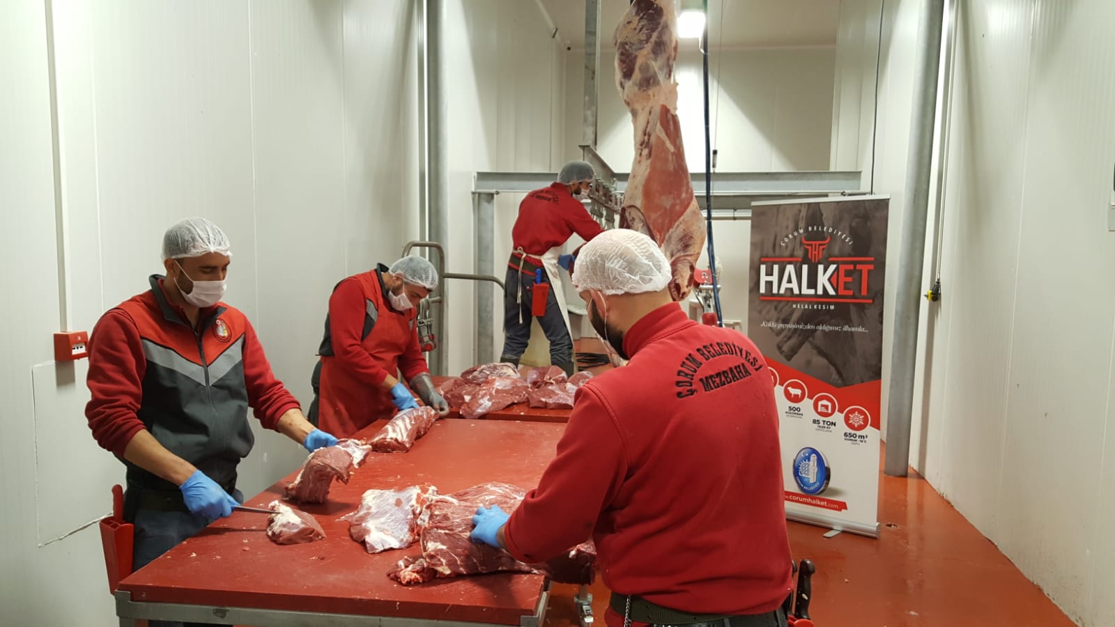 Ramazan Ayı öncesi Gıda Bankasına ayni yardımların devam ettiğini ifade eden Belediye Başkan Yardımcımız Turhan Candan, Üyük Köyü sakinlerinin yaptığı kurban bağışının çok anlamlı olduğunu ifade etti. Merkeze bağlı Üyük Köyü sakinlerinin her yıl yağmur duası için kestikleri kurbanlarını bu yıl ihtiyaç sahiplerine ulaştırmak üzere Çorum Belediyesi Gıda Bankasına bağışladıklarını kaydeden Candan, “Belediyemiz Gıda Bankasına ayni yardım olarak bağışlanan kurbanı Çorum Belediyesi Mezbahasında ücretsiz olarak kesip paketledik. Gıda Bankamızdan yararlanan dar gelirli ailelerimize ulaştırmak üzere hazırladık.” dedi.