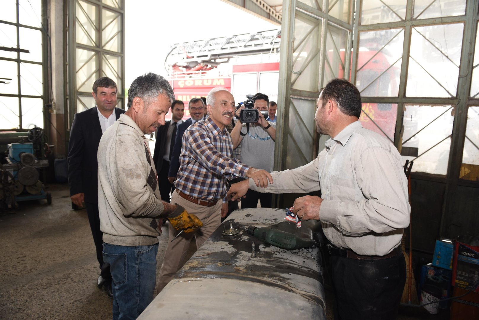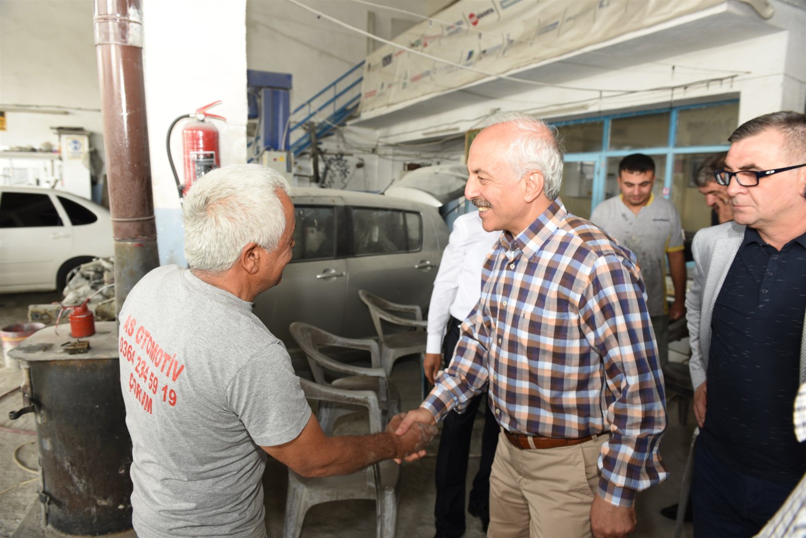 Belediye Başkanı Zeki Gül, Çorum Sanayi Sitesi’nde faaliyetlerini sürdüren esnafı ziyaret ederek 24 Haziran seçimleri öncesi destek istedi.