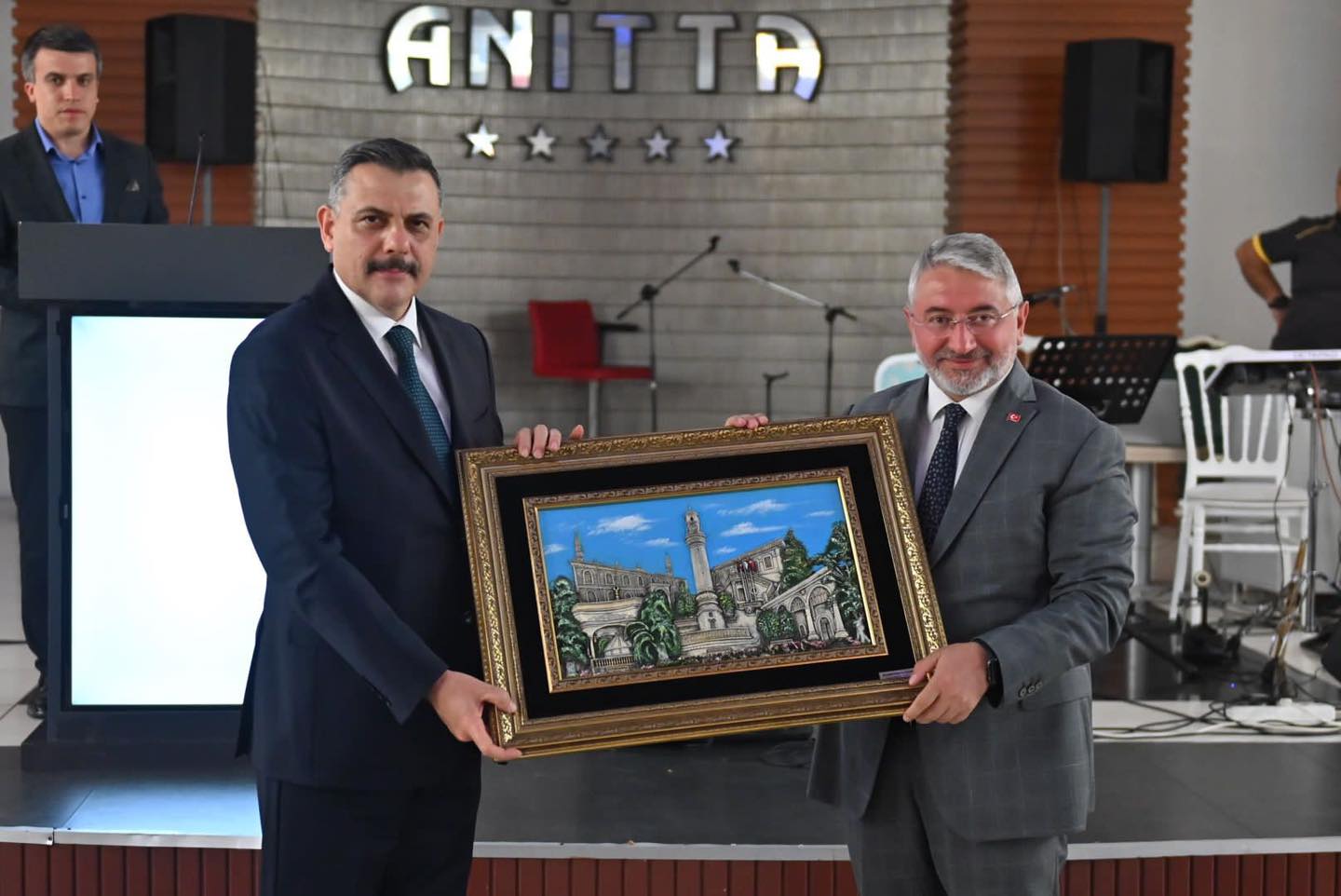 hizmetlerden dolayı teşekkür ederek, Çorum anısına hediye takdim etti.