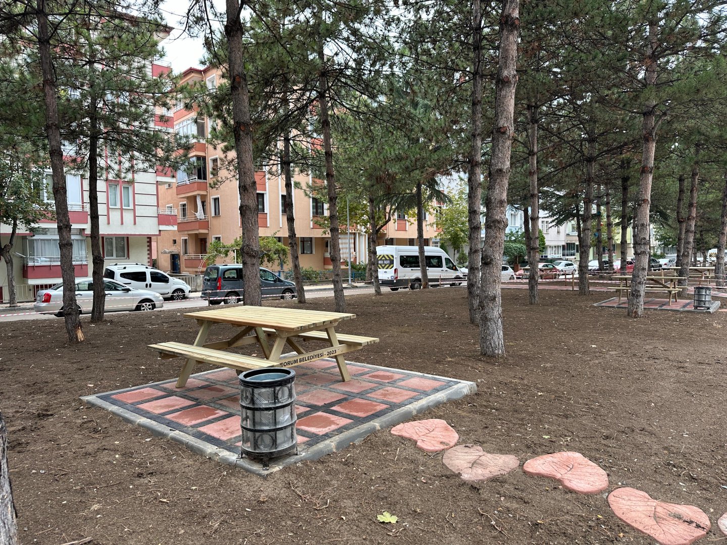 Çorum Belediyesi, Varinli Caddesi’neki yeşil alanda rekreasyon çalışmasını tamamladı.