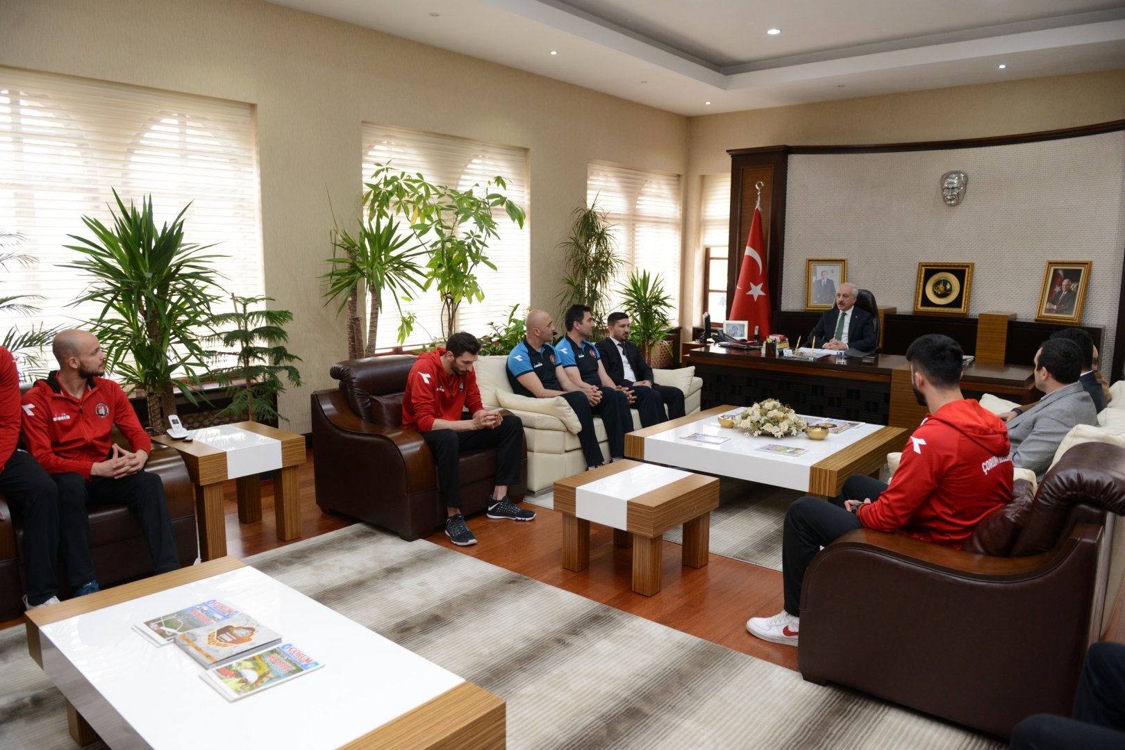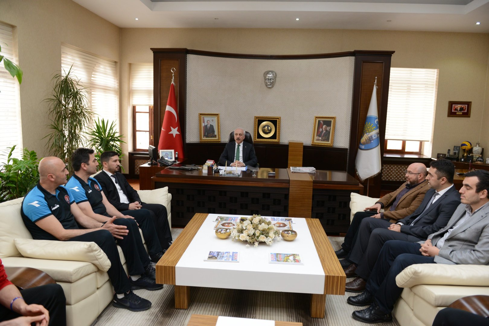 Grubunu lider olarak tamamlayıp yarı finallere kalan Çorum Belediyesi Gençlik ve Spor Kulübü Voleybol Takımı, Belediye Başkanı Zeki Gül’ü ziyaret etti.