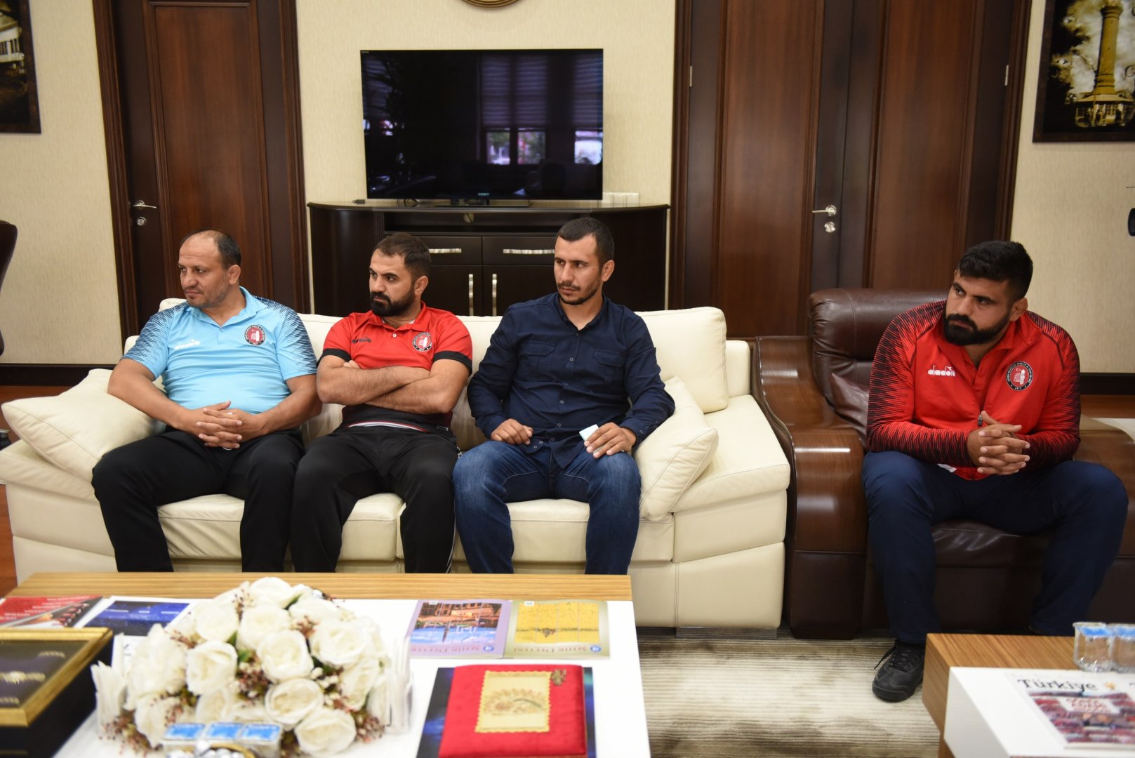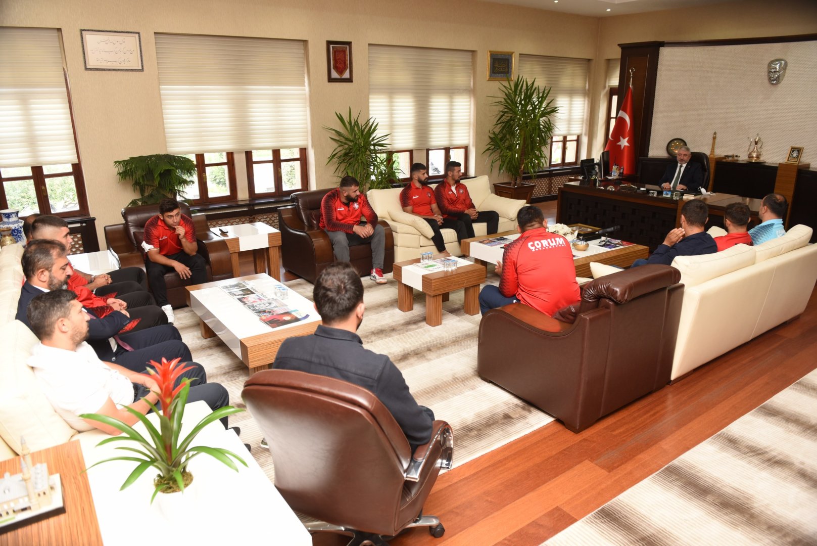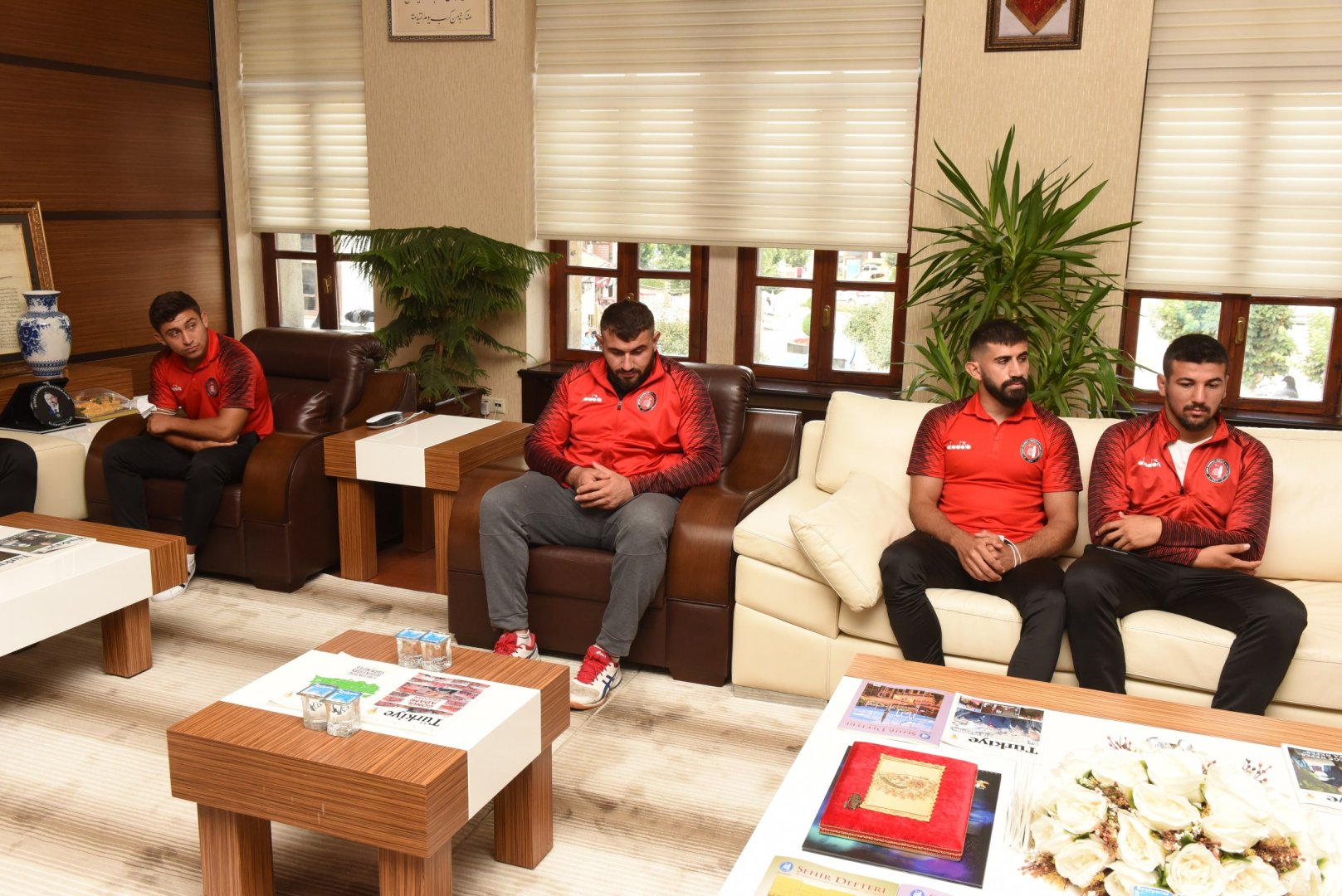 Çorum Belediyesi Gençlik ve Spor Kulübü Yağlı Güreş Takımını uğurlamak için Belediye Başkan Yardımcısı İsmail Yağbat, Çorum Belediyesi Spor İşleri Müdürü Nadir Solak hazır bulundu.