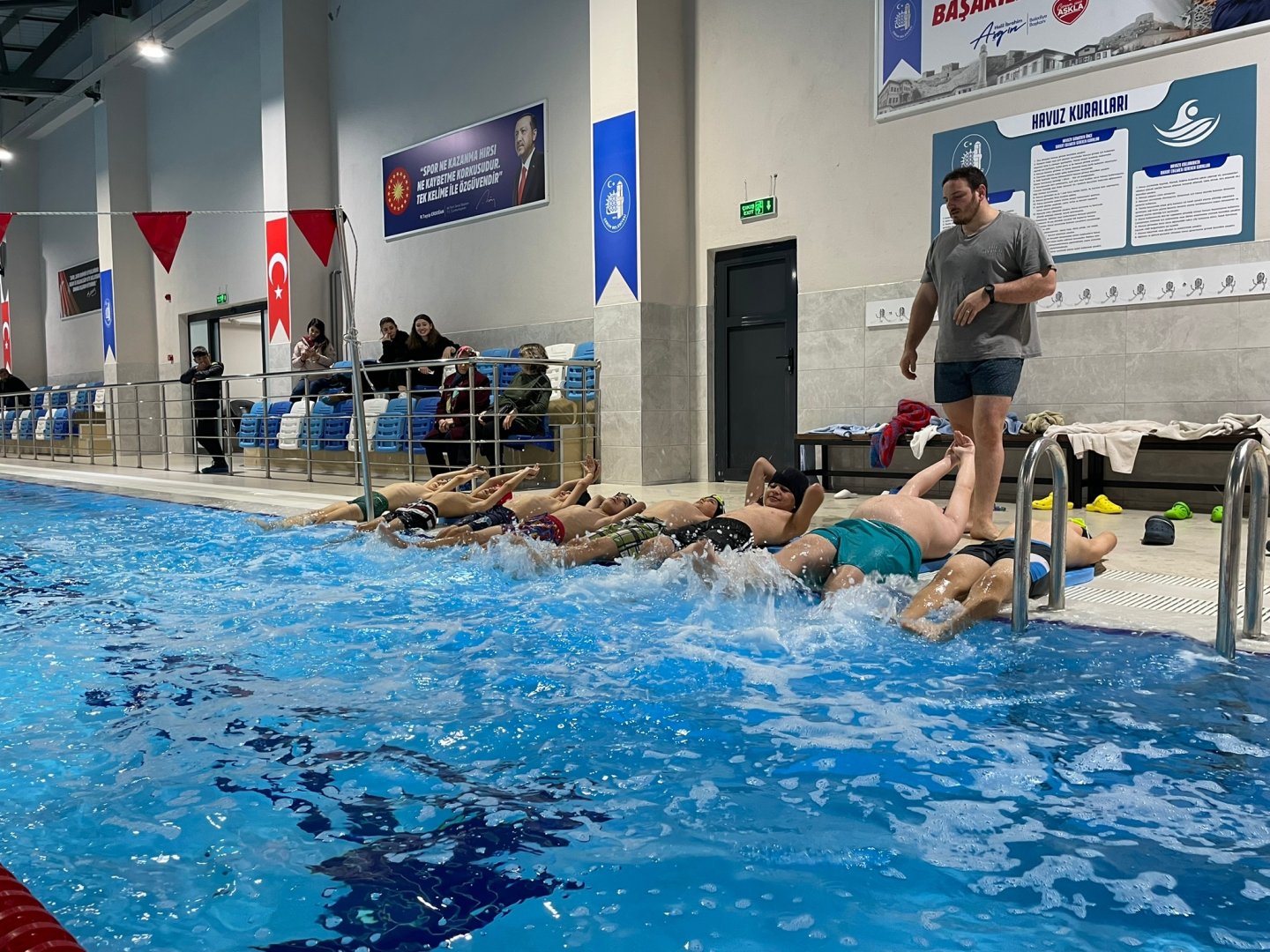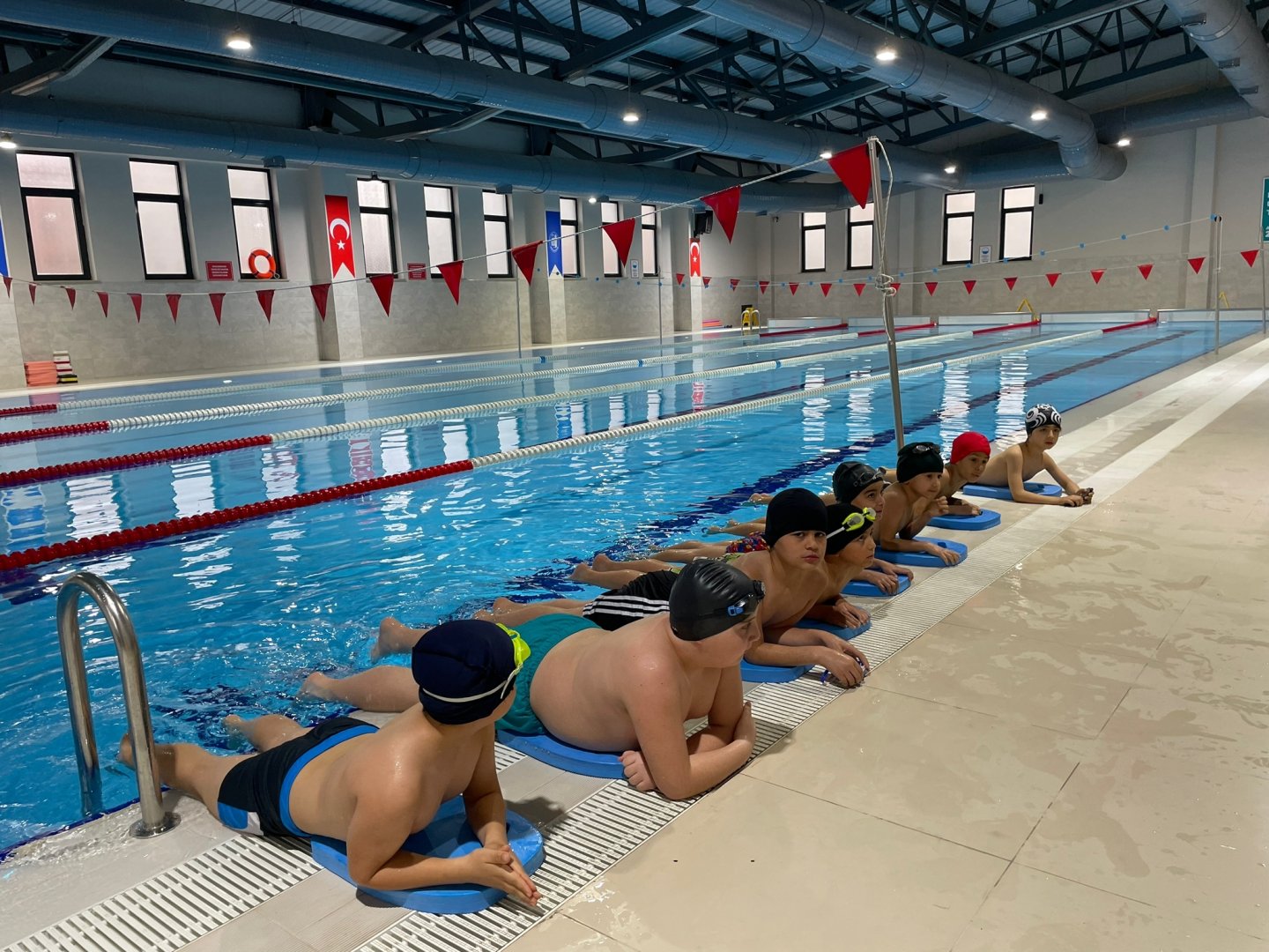 “Yüzme bilmeyen kalmasın” sloganıyla açılan kurslar, yarıyıl tatili süresince çocuklara Belediye Başkanı Dr. Halil İbrahim Aşgın’ın karne hediyesi olarak ücretsiz olarak gerçekleşiyor.