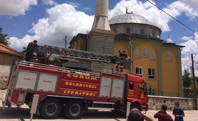 Yavru leyleğin imdadına itfaiye ekipleri koştu