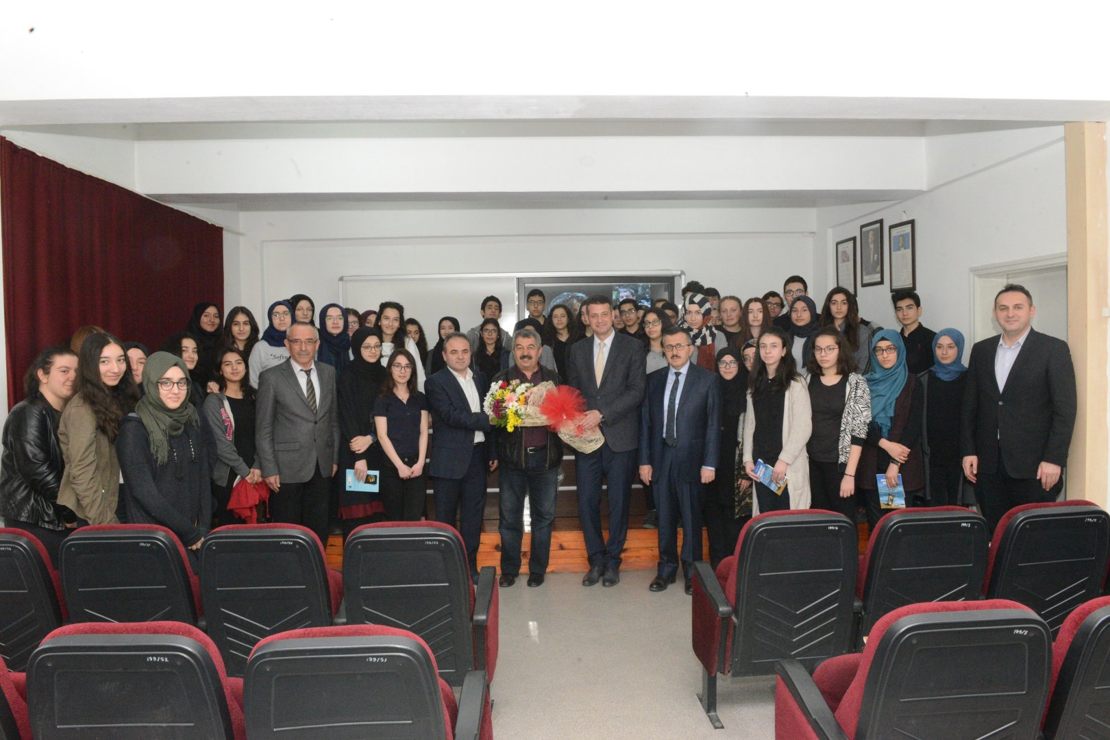 Söyleşi sonunda İl Milli Eğitim Müdür Vekili Özcan Kuşçu, Şehit Abdullah Tayyip Olçok Anadolu Lisesi Müdürü F.Turgay İkinci ve öğrenciler Atmaca’ya çiçek takdim etti.