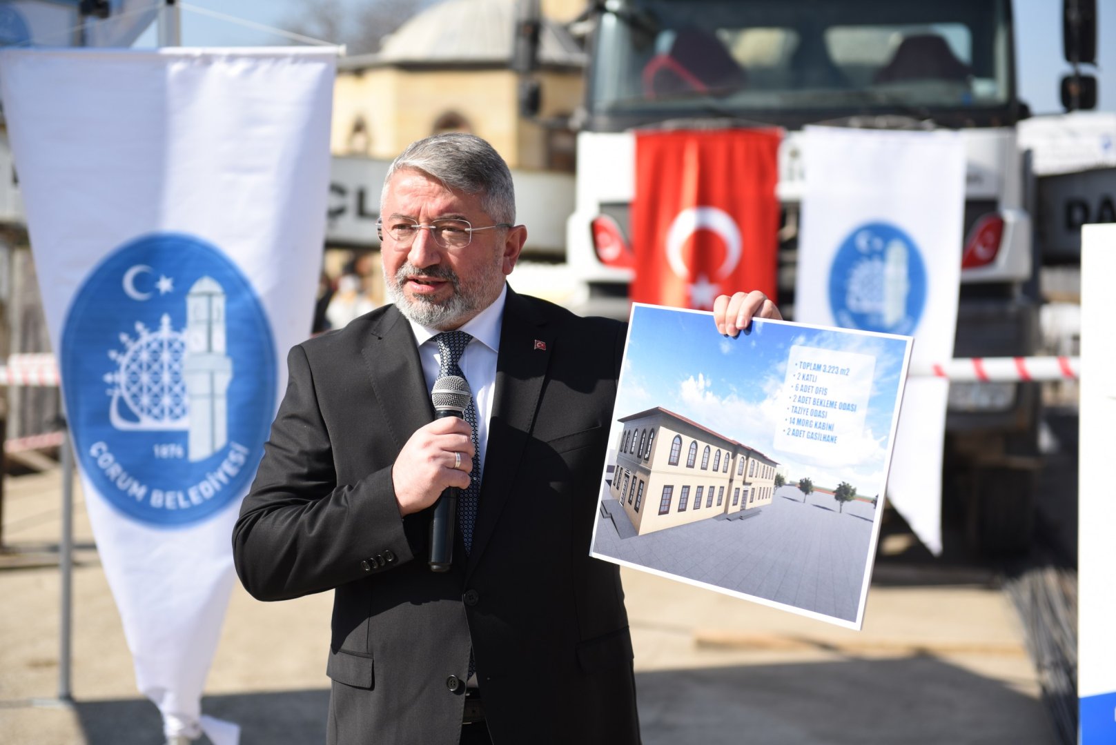 Belediye olarak doğumdan ölüme her alanda Çorum halkına hizmet sunmaya devam ettiklerini aktaran Aşgın; “vatandaşların en zor günlerinde yanında olup onlara destek olmak amacıyla daha önceden cenaze defin işlemlerini tamamen ücretsiz hale getiren belediyemiz, şimdi de cenaze yakınlarına kolaylık sunmak amacıyla şehrimizdeki önemli bir eksikliği daha gidereceğiz.” dedi  3 bin 223 m2 arsa üzerine inşa edilecek olan yeni Mezarlıklar Müdürlüğü’nün 2 kattan oluşacağını ve bina içerisinde 6 adet ofis oda, toplam 46 kişilik 2 adet bekleme odası, 40 kişilik taziye odası ve 14 adet morg kabini ile bay ve bayanlar için ayrı olmak üzere iki adet gasilhane bulunacağını söyledi. Başkan Aşgın; halkımızın en mutlu günlerinde olduğu gibi en zor ve kederli günlerinde de yanında olmak bizim boynumuzun borcudur. Baştan sona cenaze ve defin işlemlerini kolaylaştırmayı amacıyla bu projeyi hayat geçiriyoruz. Bu kapsamda daha önceden ücretli olarak sunulan defin işlemini tamamen ücretsiz hale getirmiştik. Şimdi de yeni inşa edeceğimiz Mezarlıklar Müdürlüğü bünyesinde morg ve gasilhane hizmeti sunacağız.” şeklinde konuştu.