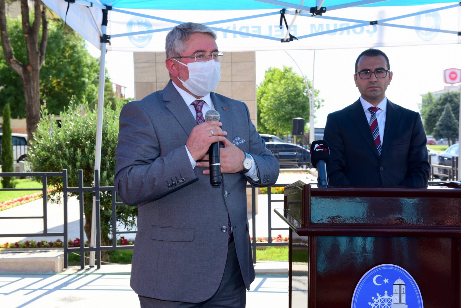 Çorum Muharip Gaziler Derneği Başkanı Muharrem Gül, Çorum Şehit Aileleri ve Vazife Malulleri Derneği Başkanı Galip Deniz ile yönetim kurulu üyelerinin de hazır bulunduğu tören saygı duruşunda bulunulması ve İstiklâl Marşı’nın okunmasıyla başladı.