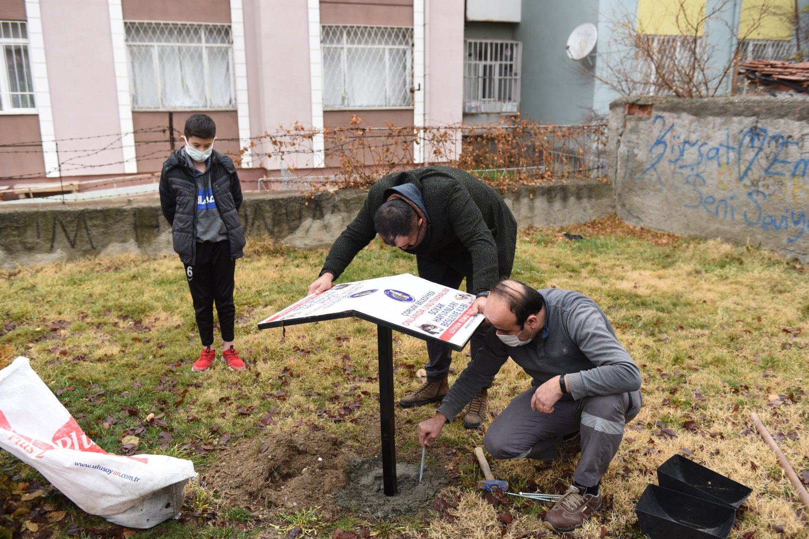 Ekipler besleme kabını, Gülabibey Mahalle Muhtarlığının arkasında bulunan semt parkına Yiğit Kaan Cenik ile birlikte yerleştirdi. Yiğit Kaan ve Gülabibey Mahalle Muhtarı Hasan Belli, taleplerini geri çevirmediği için Belediye Başkanımız Dr. Halil İbrahim Aşgın’a teşekkür etti.