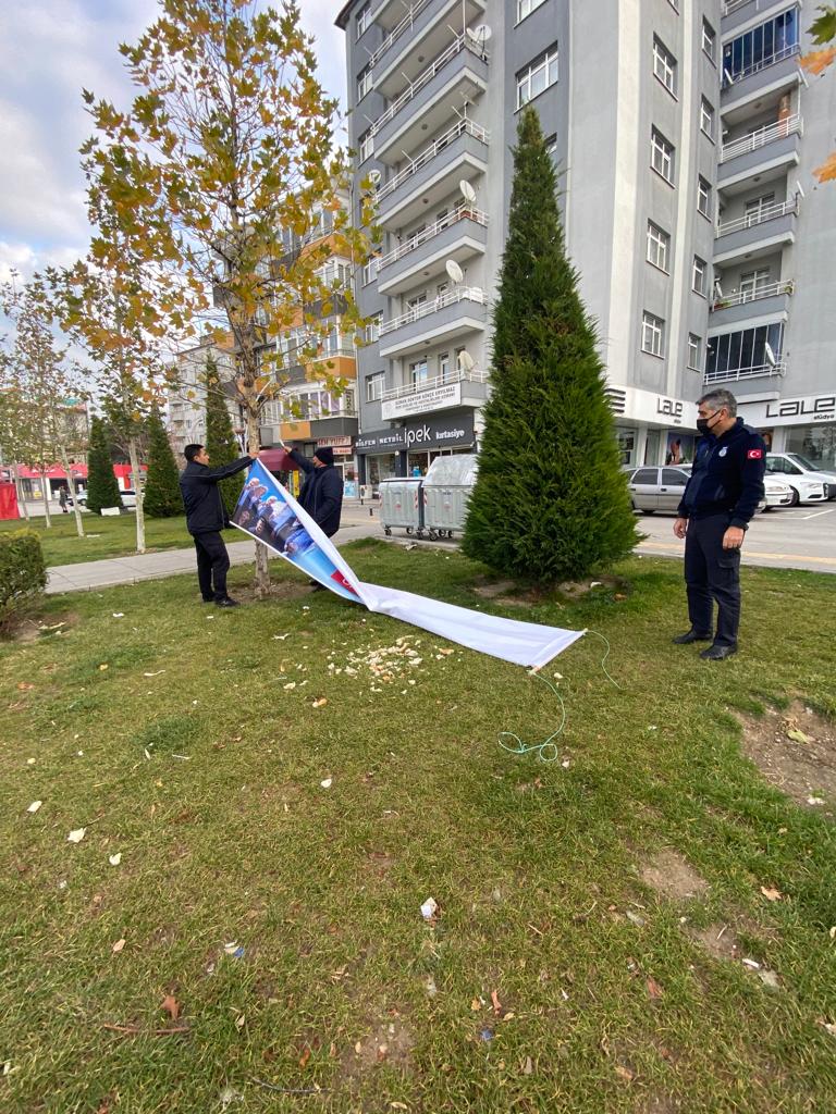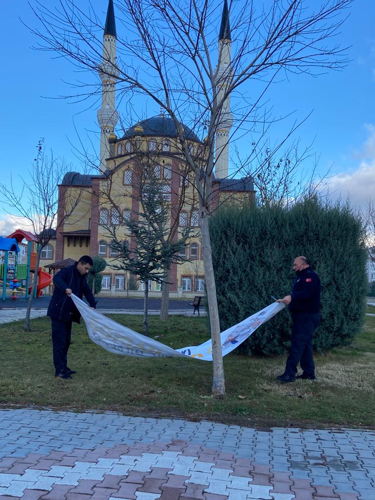 Belediyemiz Zabıta Müdürlüğüne bağlı ekipler şehir genelinde afiş ve pankartları bir bir topladı.